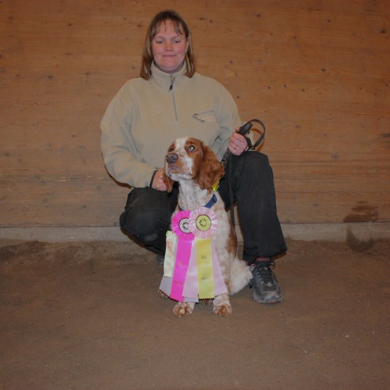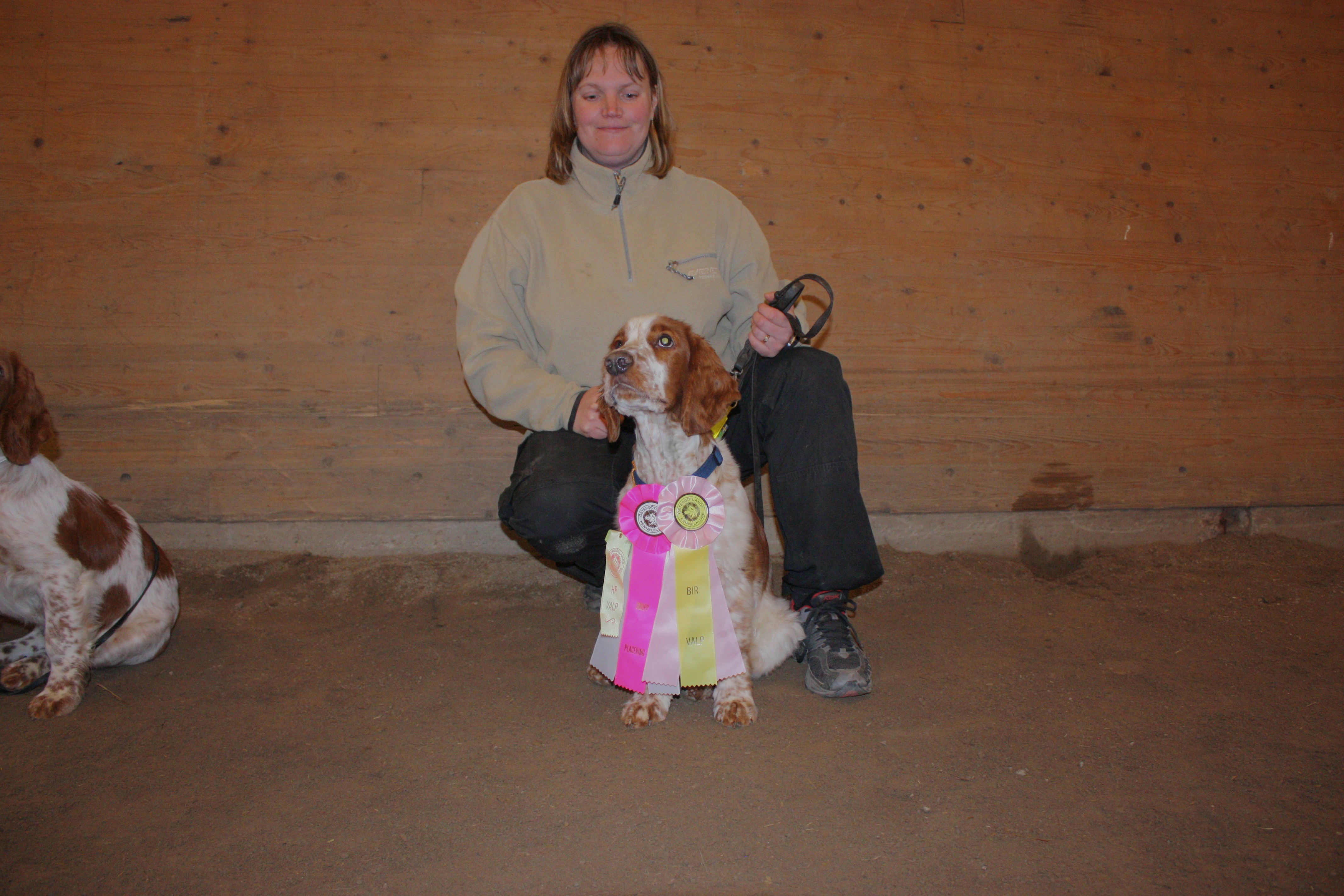 Helén ställde Atlas som var ensam i sin klass så att han skulle vara bäst i klassen var självklart… Inte lika självklart att få HP och gå vidare till konkurrensen om BIR/BIM men det fick han! Konkurrenten om BIM/BIR var syrran Nova som fick nöja sig med BIM (Bäst i motsatt kön) eftersom Atlas tog BIR (Bäst i rasen) och dessutom gick vidare till gruppfinal! I gruppen var åtta hundar utvalda och av dem så var en labrador och en golden för svåra men en tredjeplats är otroligt bra av en så ung kille!