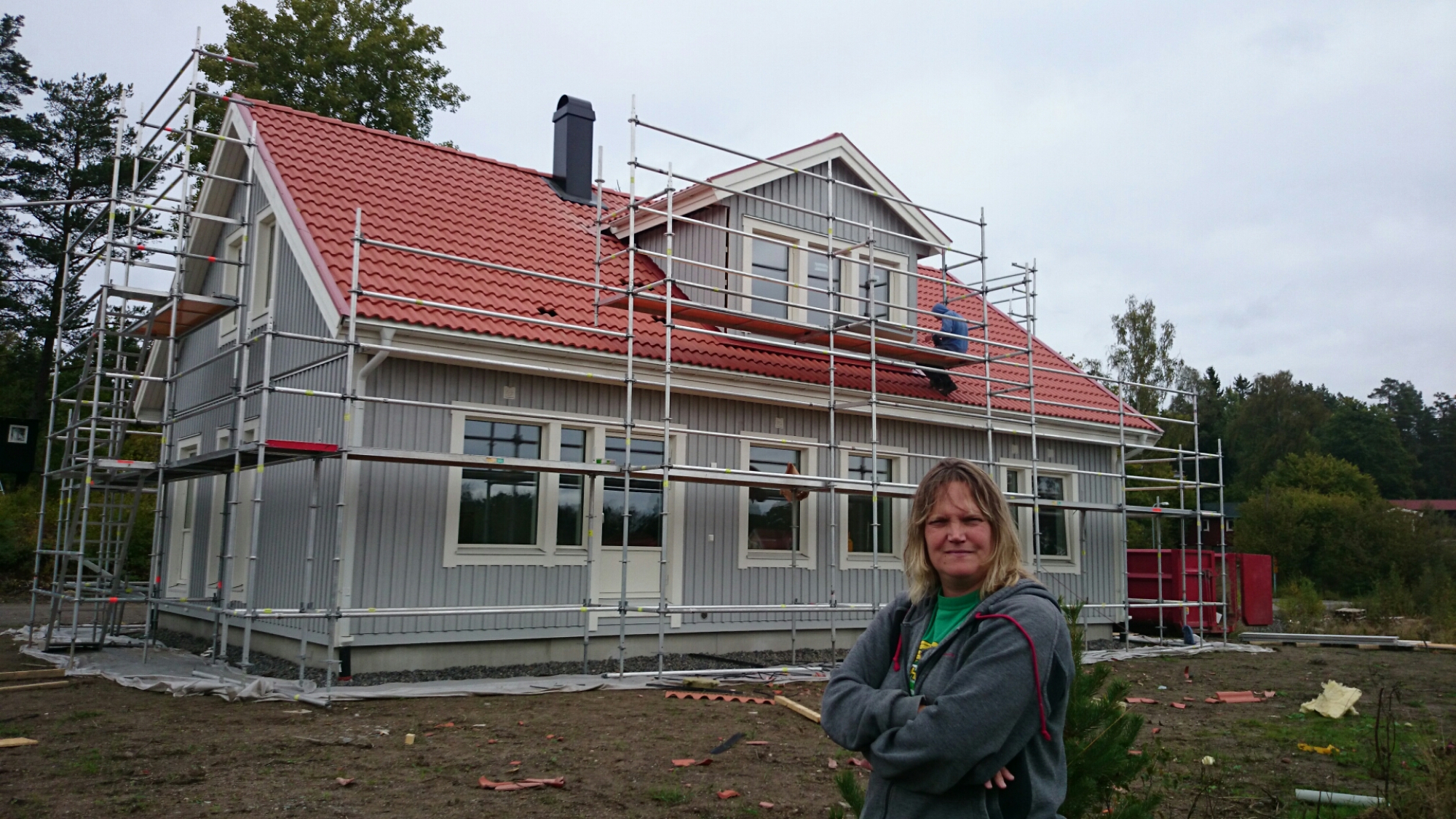 Många svordomar blev det men nu är det uppe! Vindskivor och färg återstår men det gör vi nästa helg.