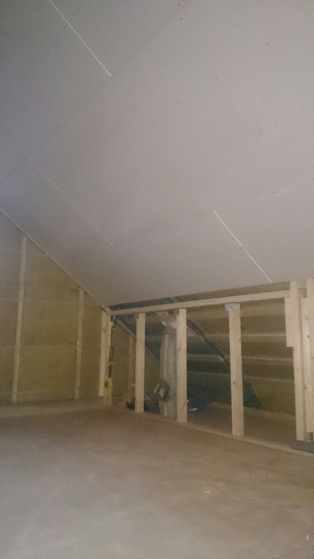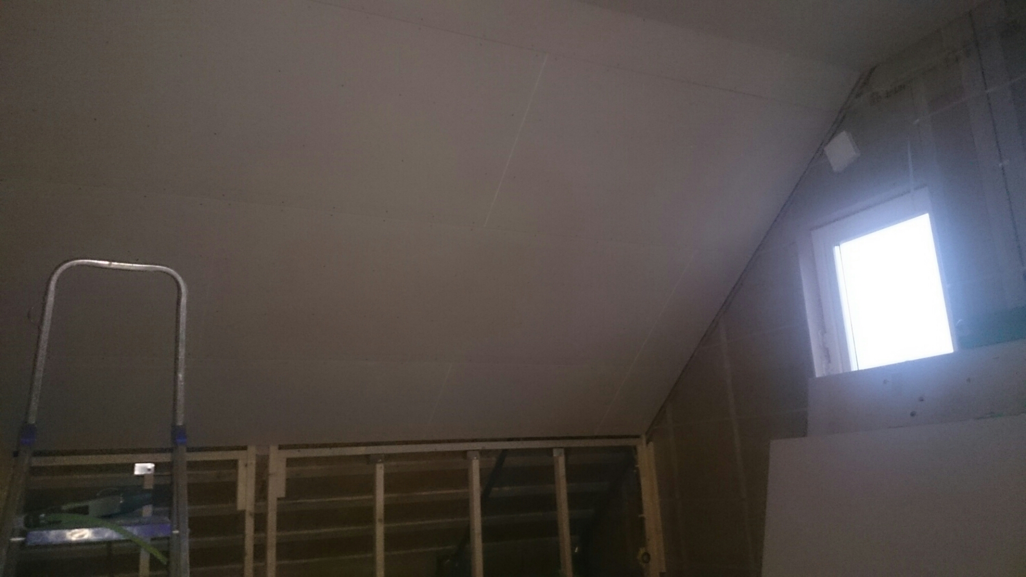 Vi åkte direkt till huset för att lämna det vi inte behöver den närmaste veckan. Givetvis hade Rappen jobbat, trots att det är lördag, och satt gips i det stora sovrummets tak och väggar.