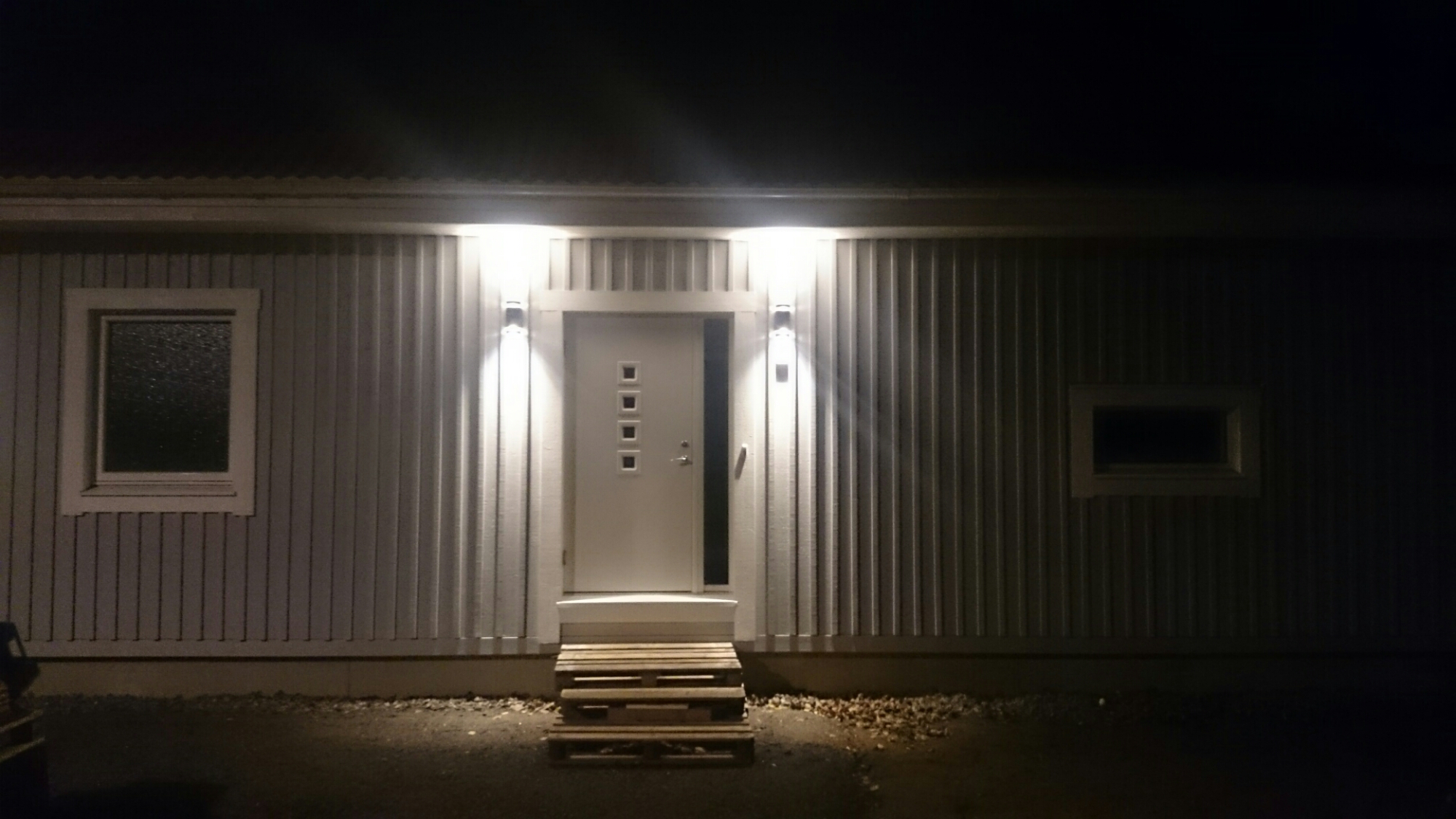 Igår fick vi hjälp att sätta upp lamporna utanför entréerna och det blev nästan bättre än förväntat!