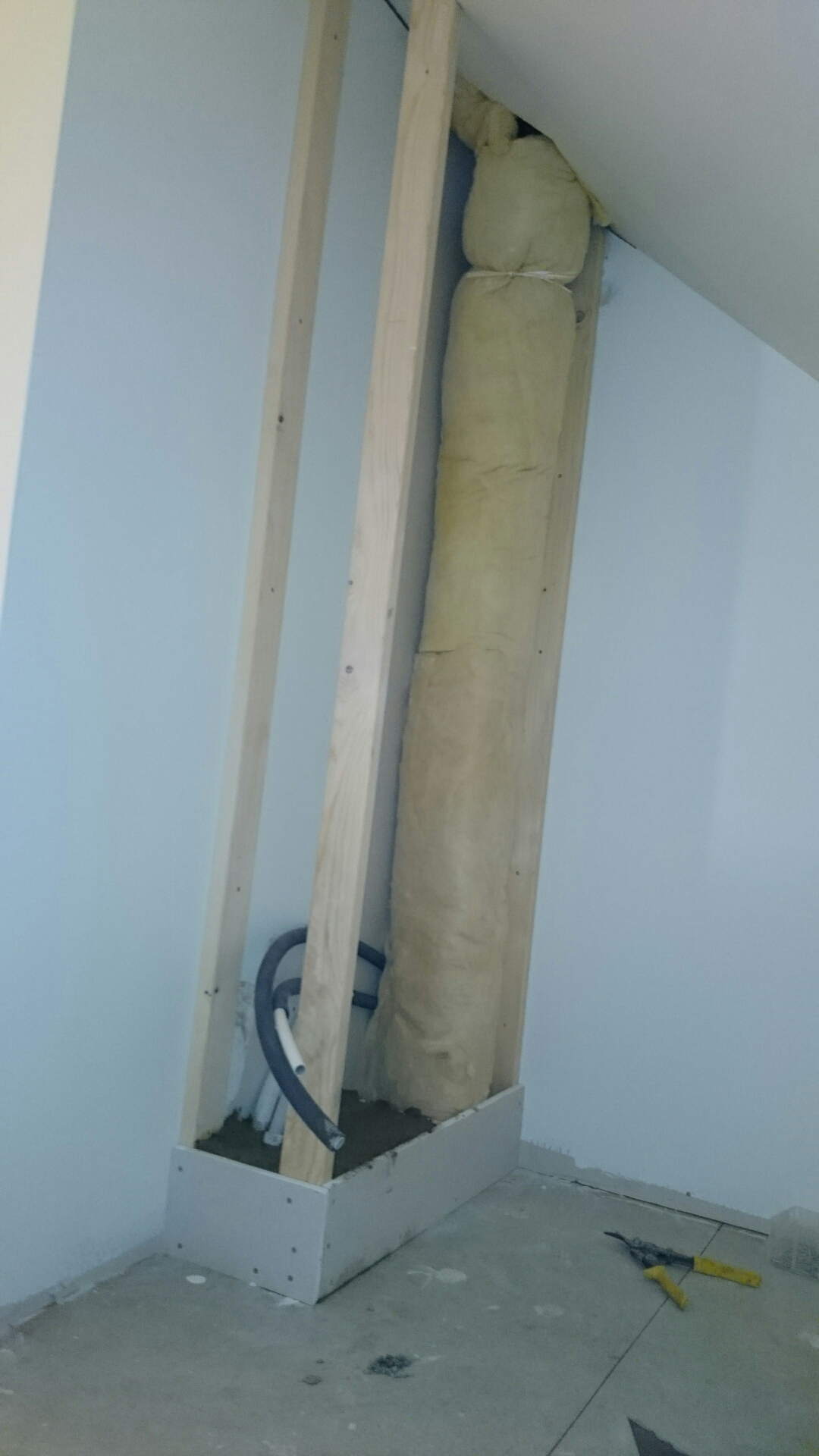 I lilla sovrummet har Rappen börjat med trumman runt rören och isolerat ventilationen, börjar se slutet även där!