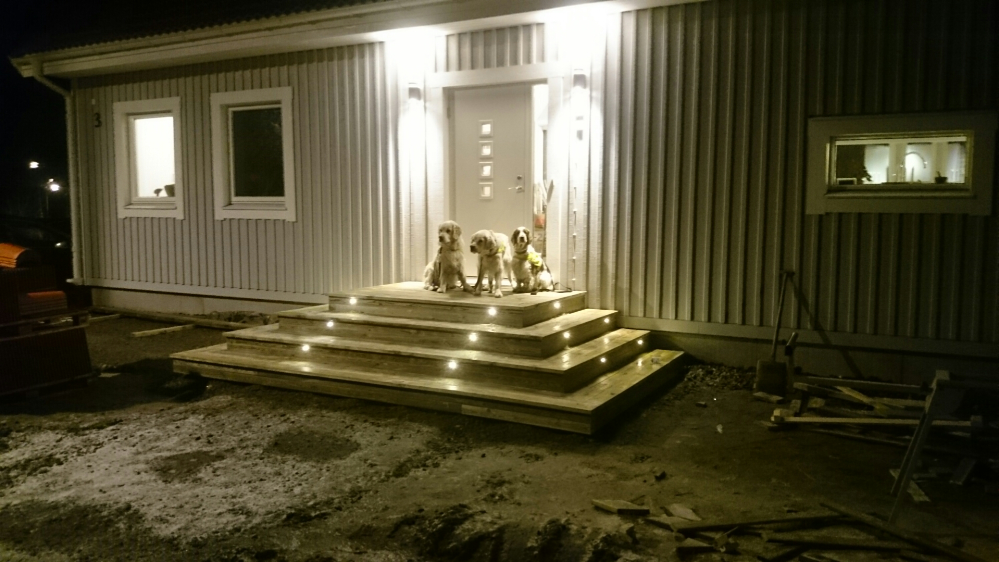 Helgens (och en del av förra) arbete har bestått av att bygga en trappa vid entrén. Storleken ändrades direkt så några vändor till Bauhaus har det blivit…