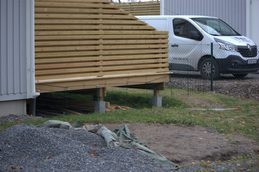 De hade någon speciallösning för att gjuta i berget. Dagen därpå kom de och kände på betongen men det hade inte brunnit färdigt så de lämnade bara av själva staketet och kom tillbaka på lördagen och då var de tre som monterade staketet.