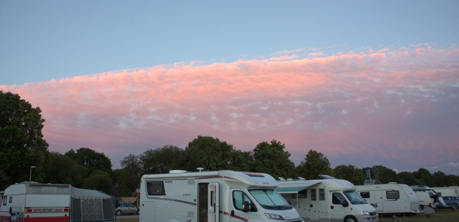 Vi fick en plats precis vid servicehuset som, precis som nästan alla platser, var nästan helt plan. Vi hittade snabbt tillbaka till de promenadvägar vi använde förra gången vi var där och får väl säga att vi är nöjda. På kvällen blev det lite sköna färger på himlen.