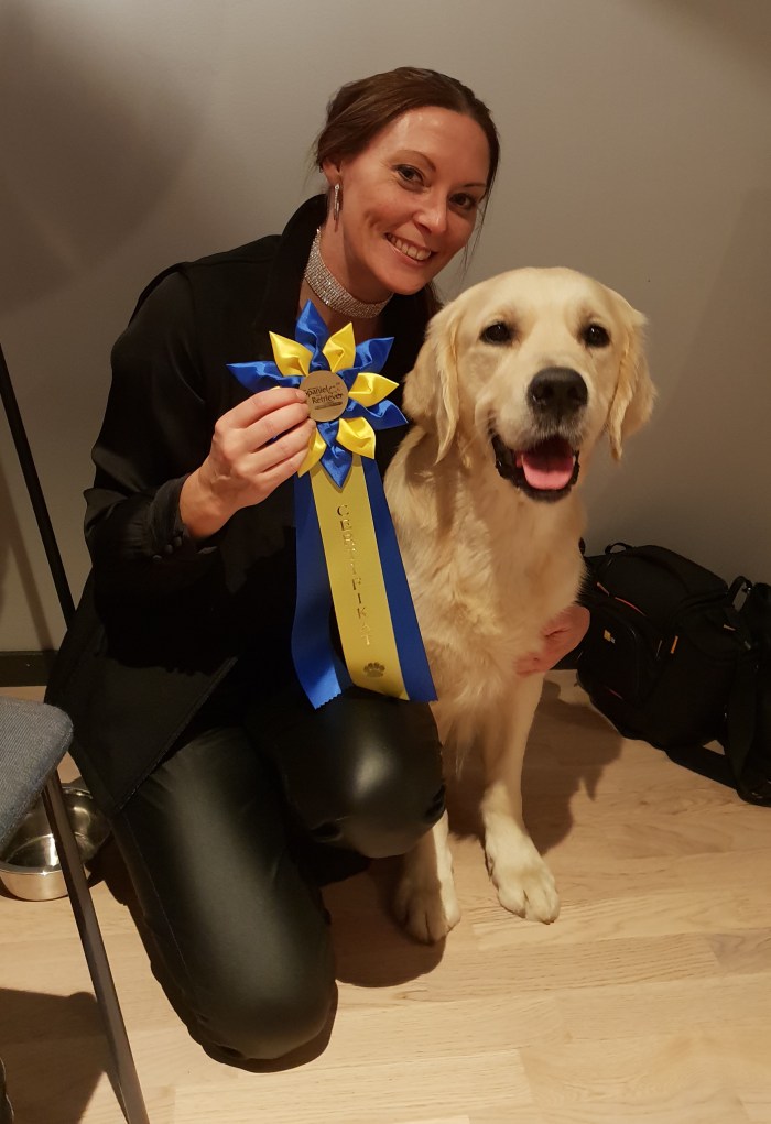 Izidor stannade inte där utan när vi var på Frösön tillsammans med ett gäng från Kennel Sangold så fick han sitt första cert och blev BIM tillsammans med Annelie! Vi får se hur fortsättningen blir, Annelies egna hundar kommer snart upp i samma utställningsklass som Izidor.