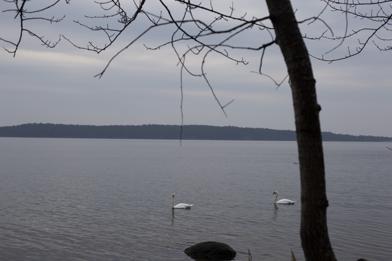 I början av turen såg vi ett svanpar som simmade helt lugnt trots att jag och hundarna stod på stranden och fotograferade / höll koll på dem. Till och med Atlas som brukar vara rätt på när det gäller fåglar av alla de slag var rätt avslappnad. Underbart att kunna vandra i naturen utan att de jagar upp det vilt som finns.