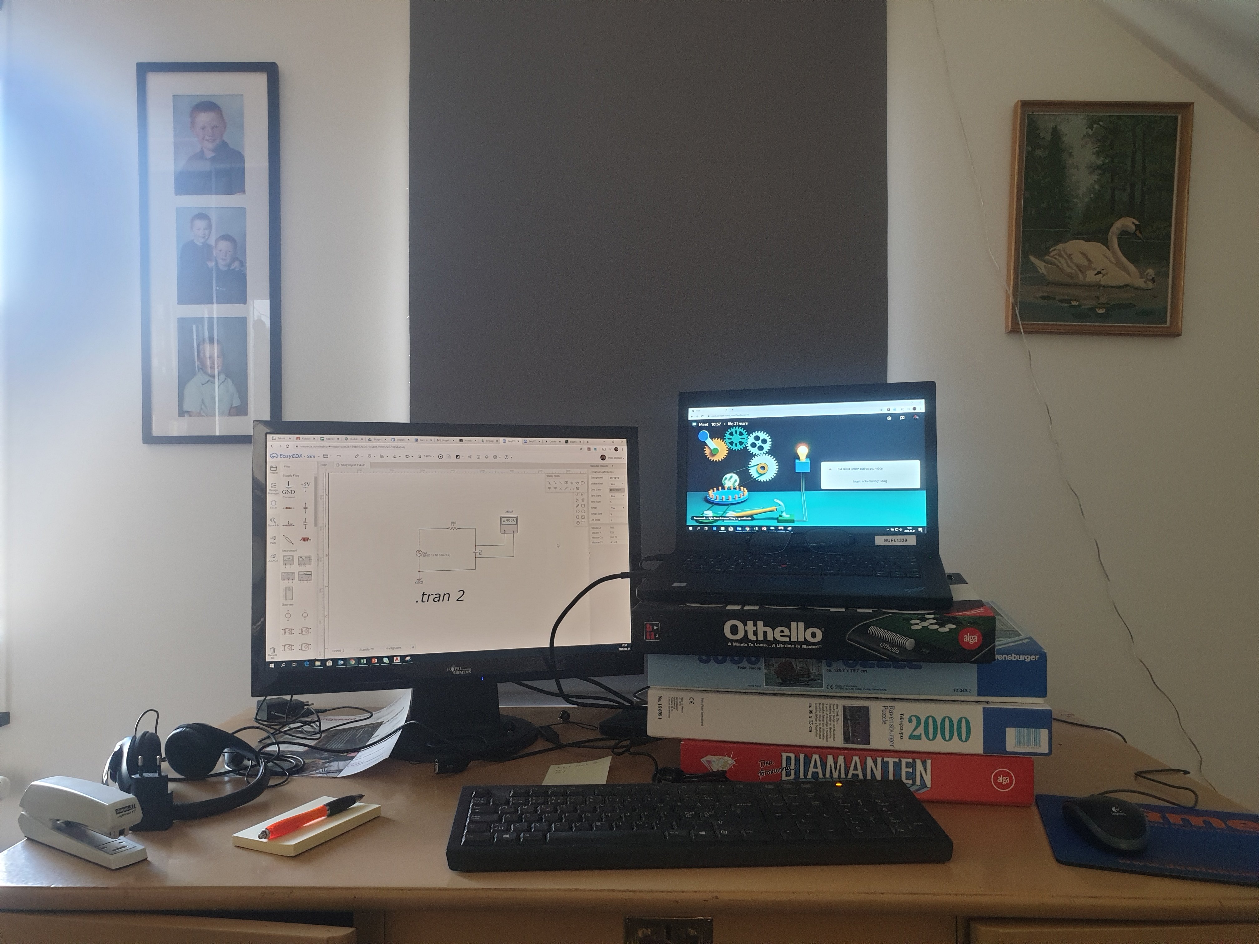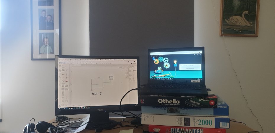 Än så länge verkar det fungera alldeles utmärkt för eleverna att hålla kontakt med mig och andra lärare via google meet, e-post och liknande plattformar. Jag letade efter lite speciella verktyg för att mina elever ska kunna genomföra de kvarvarande laborationerna i ellära som simuleringar istället, jag letade rätt länge och till slut upptäckte jag att ett verktyg som jag använt rätt länge för att skapa scheman för laborationerna även har en simuleringsdel som jag helt missat! https://easyeda.com/ finns det verktyget på, för att kunna arbeta måste man skapa ett konto men det gör eleverna enkelt med det googlekonto som de redan har via skolan. Kvar för mig är att skriva om alla instruktioner och skapa en liten instruktionsvideo om hur det faktiskt fungerar.
