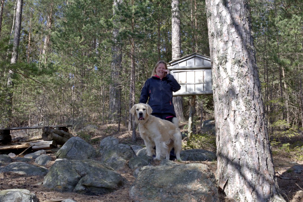 Idag passade vi på i det vackra vädret att ta en tur ut till Gålö för att gå delar av Stora Gålöslingan som blev ungefär en mil. Vi träffade på ovanligt många människor som precis som vi tar sin tillflykt till naturen för att må bra i själen. Bland dessa var Heléns bror och hans fru, Jonas och Mia, som vi tog en fika med. Vi fick testa Jonas egenhändigt byggda ”ljugarbänk” och kan tala om att den är alldeles utmärkt skön!