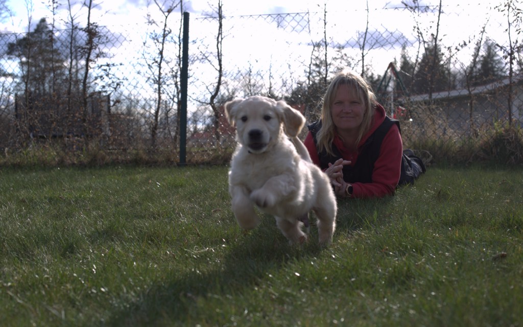 Utöver den normala vardagsträningen ser vi till att få tid för träning varje dag, 5 – 10 minuter räcker långt när det handlar om en liten valp som har så lätt att lära och samtidigt inte ska hinna bli trött eller uttråkad. Det här är första gången som vi redan från början har ”bestämt” att Helén ska ha huvudansvaret för träningen av Knasen, tidigare har det alltid varit jag som tagit den biten delvis beroende på att tidigare hade bara jag körkort och dessutom arbetar Helén nätter vilket brukar krocka med kursernas tider. Jag har med andra ord helt kunnat koncentrera mig på att filma det som görs och komma med förslag på hur det kan bli ännu bättre (man får vara försiktig när man undervisar sin fru) med utgångspunkt i alla kurser som jag gått med våra tre tidigare hundar. Helén är riktigt duktig och samspelet är otroligt bra när hon tränar med Knasen.