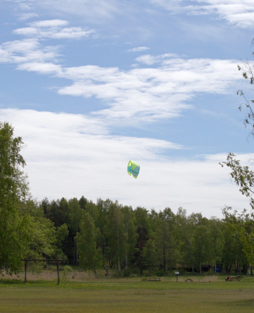 På stranden är det rätt ofta folk som ägnar sig åt kitesurfing och så även idag. Bara en skärm uppe och under den tiden vi var där så tog sig personen inte ut på vattnet utan ”torrkörde” på stranden. Man kan se vilken kraft vinden har när personen inte kan hålla emot utan måste följa med när det tar i lite.