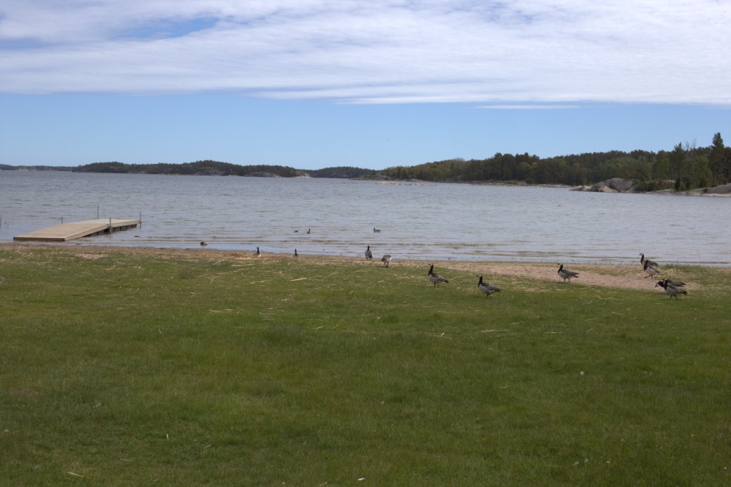 Efter besöket på Dogmotion åkte vi till Gålö havsbad där det faktiskt även finns en strand där hundar inte är förbjudna (på den andra stranden är det istället fullt med skit från kanadagäss…) för att börja bekanta sig med fenomenet öppet vatten och bada.