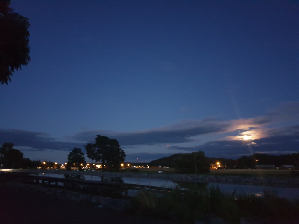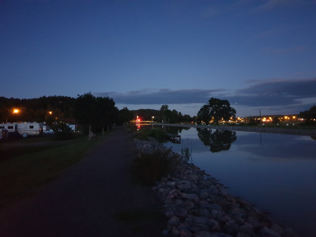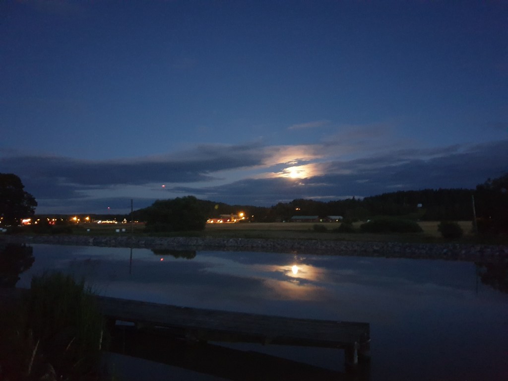 I Söderköping var vädret ännu bättre: sol, 20-25 grader och minimalt med vind. Vi fick återigen användning för vårt solskydd, bra inköp med andra ord! När vi gick kvällsrundan första kvällen var det fin måne och stilla vatten så jag kunde inte låta bli att ta några kort med mobilen, några blev rätt bra faktiskt!