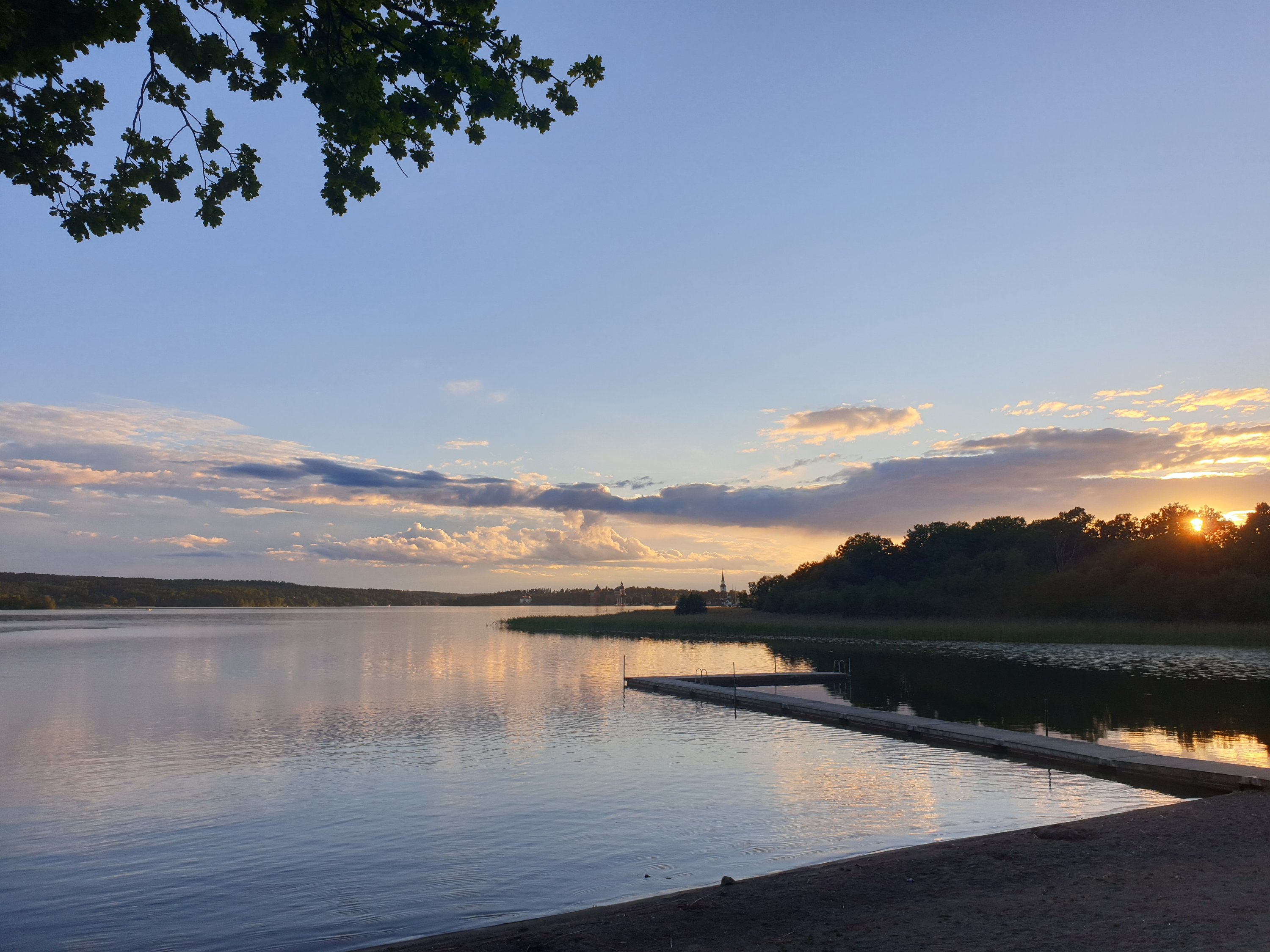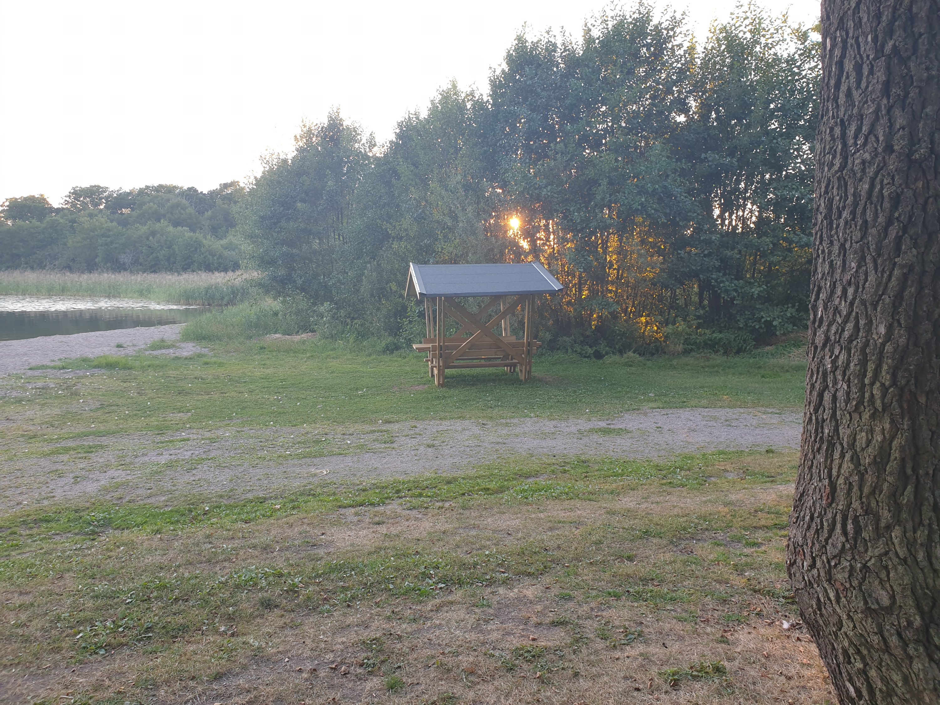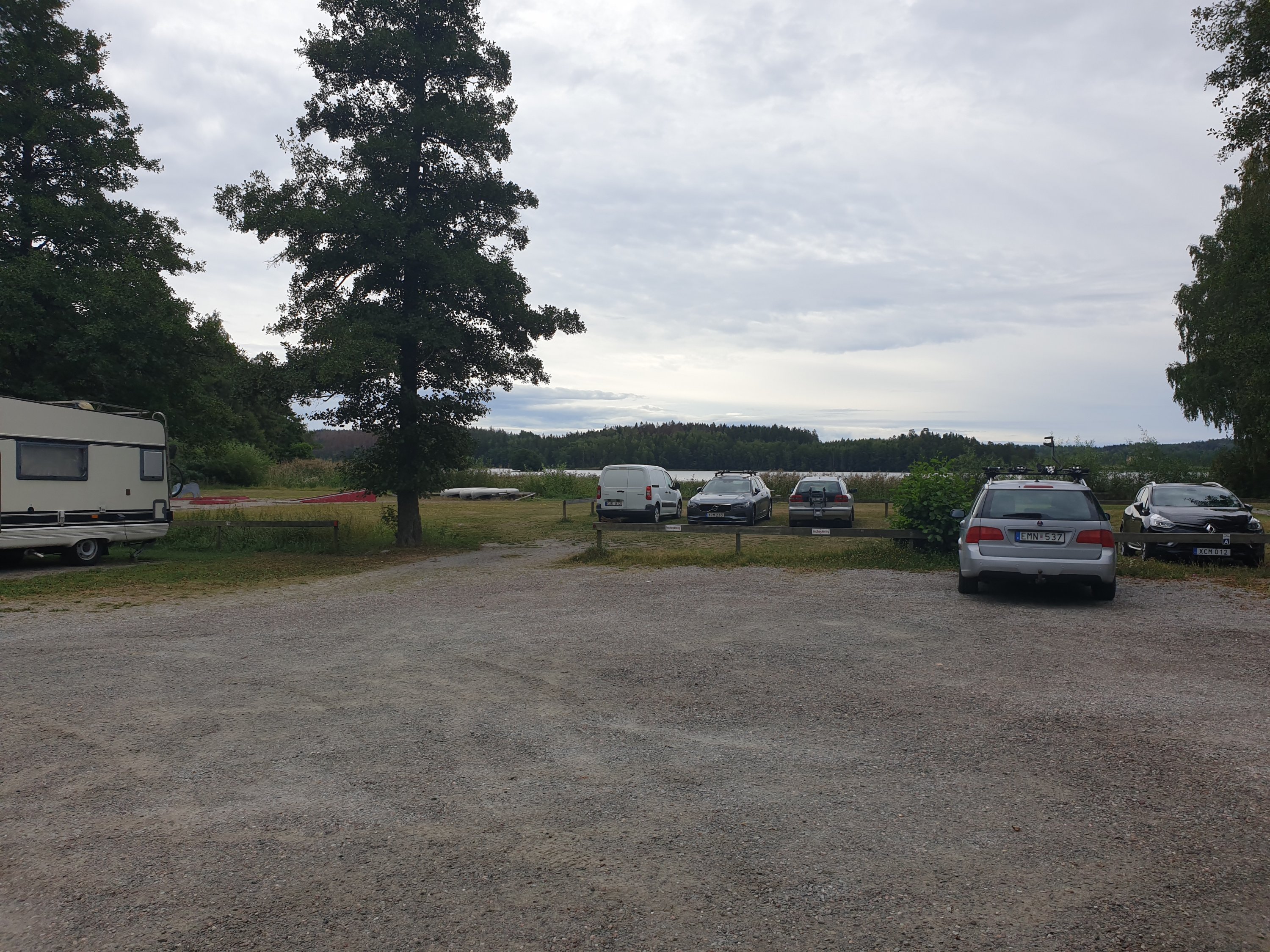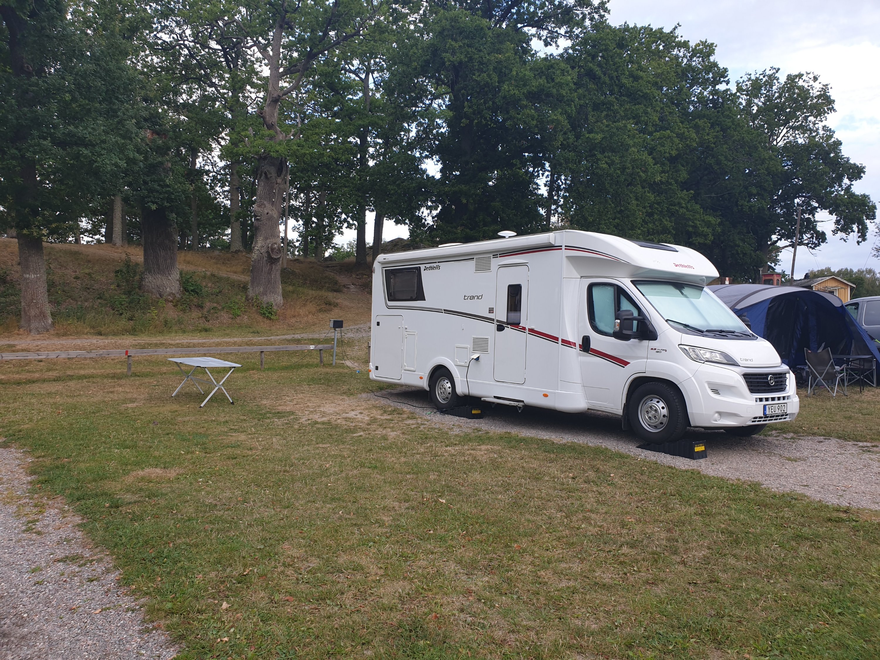 Vi hade givetvis inte bokat men fick en bra plats nära servicehus, strand (för kallt för bad) mm. Vi fick dessutom rätt sida mot solen om den får visa sig för alla moln som hotar med regn.