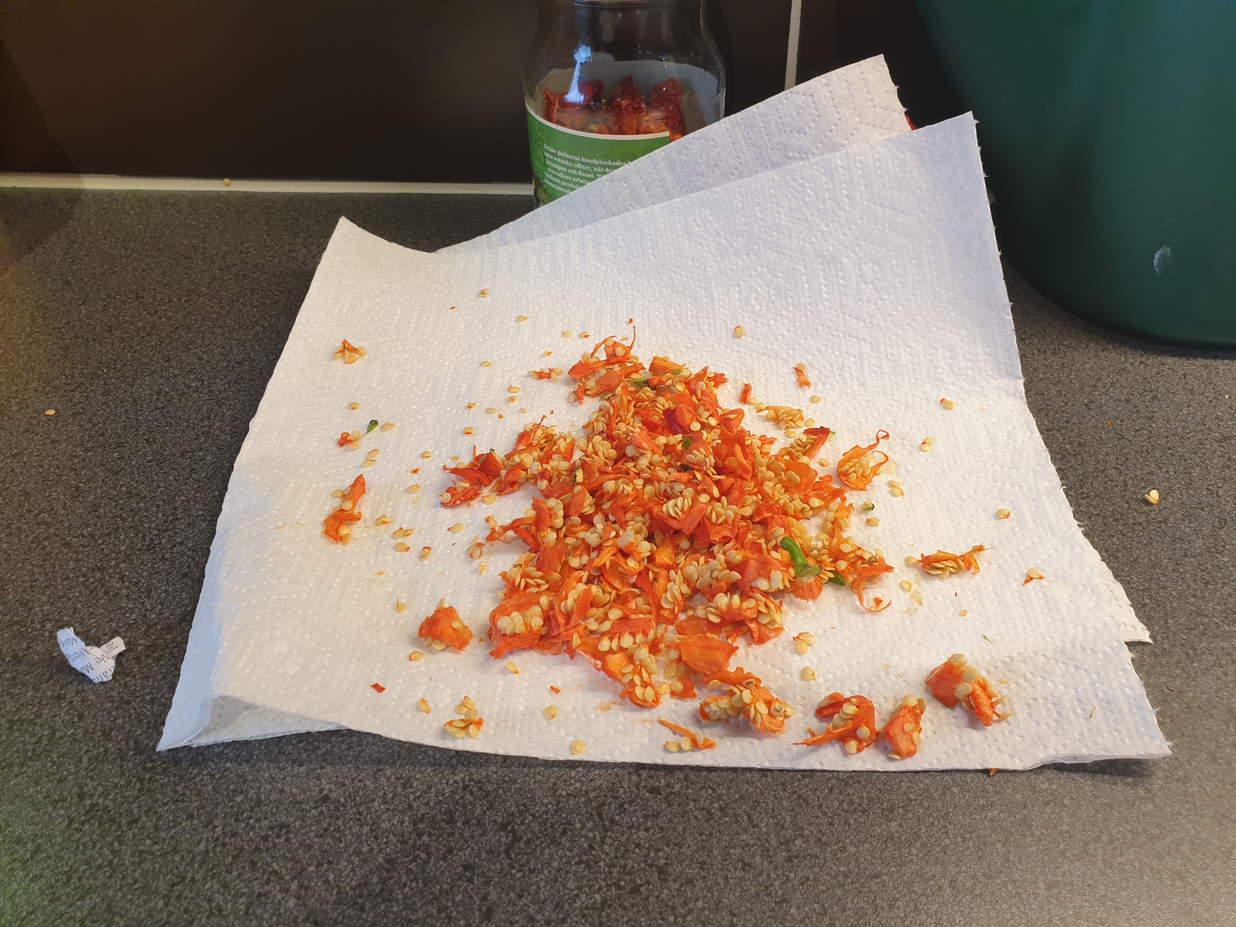 Det som är lite annorlunda när man hanterar chilifrukter är att man bör vara lite försiktig med fruktköttet och kontakt med känsligare delar på kroppen, proffsen har inga problem med detta men vi använder handskar!