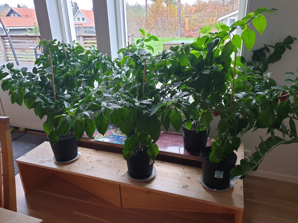 Fortfarande kommer det nya frukter och några var inte riktigt mogna än så det blir mer lite senare. Får se om vi fryser in dem som vi gjorde förra året. Då försökte vi torka dem i fönstret som många rekommenderade på nätet men det fungerar nog bättre om man har element istället för golvvärme… Våra fick liksom päls…