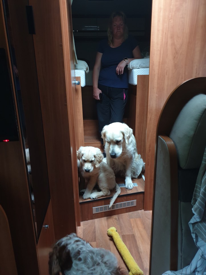 Alla tre hundarna trivs i husbilen och följer givetvis med på våra små resor. Knasen är den som är lugnast när vi åker men samtidigt vildast (valpar ska vara så) när vi stannar. Atlas är som spaniels är mest, alltså rätt hög aktivitetsnivå och Izidor är nöjd så länge han är med oss och vi är aktiva tillsammans. Vi ser fram mot nästa sommar när även Knasen får gå lite längre sträckor så vi kan utöka våra ”promenader” där vi stannar.