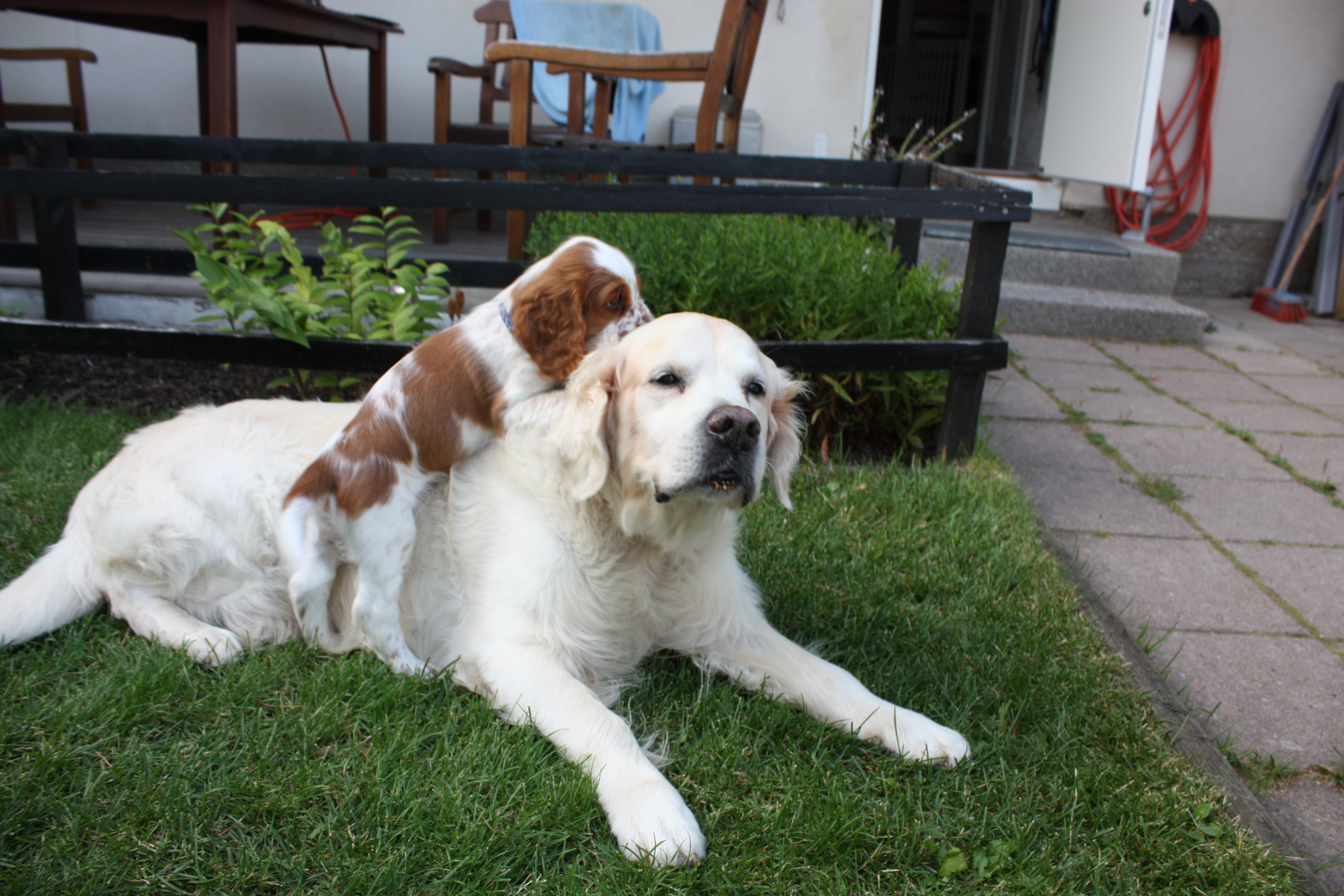 När vi så småningom hade tagit bort både Hasse och Zimzon pga ålder och hälsa så återgick vi till Golden Retriver med Izidor och nu några år senare flyttade Knasen hem till oss.