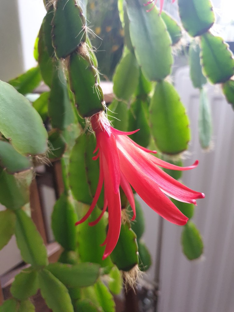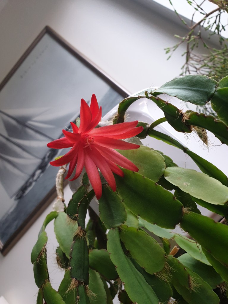 Ibland upptäcker vi att våra kaktusväxter blommar! Just i år står de uppe på övervåningen pga Knasen och hans nyfikenhet så vi ser dem inte lika ofta och missar kanske vattningen ibland… Kanske därför de blommar?