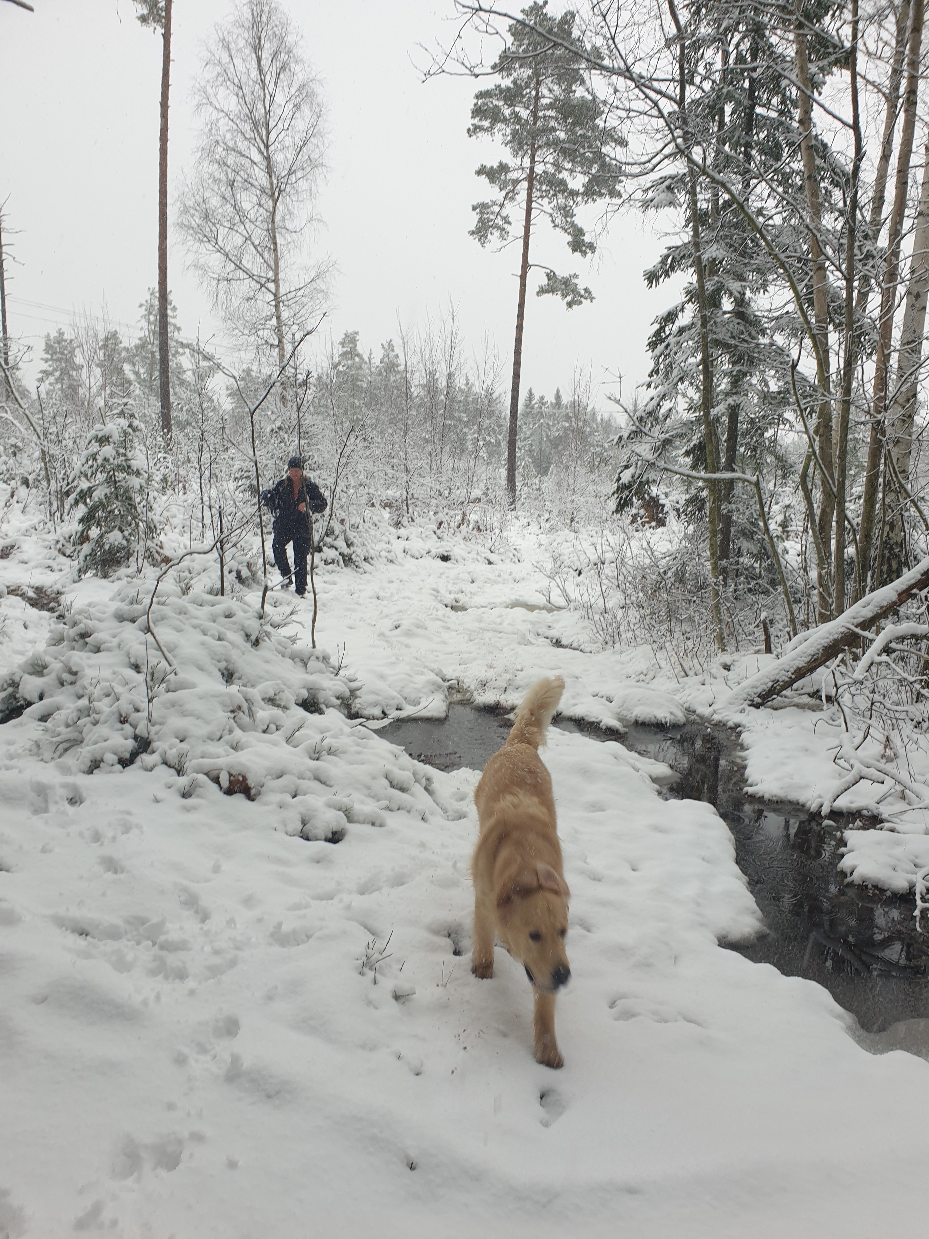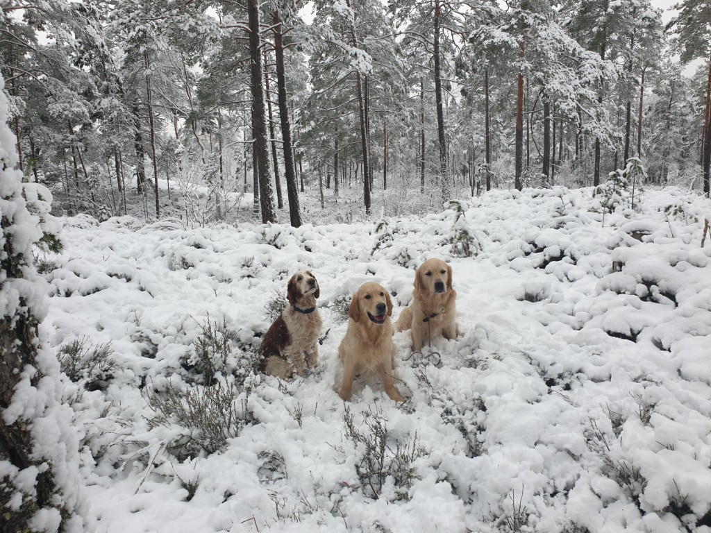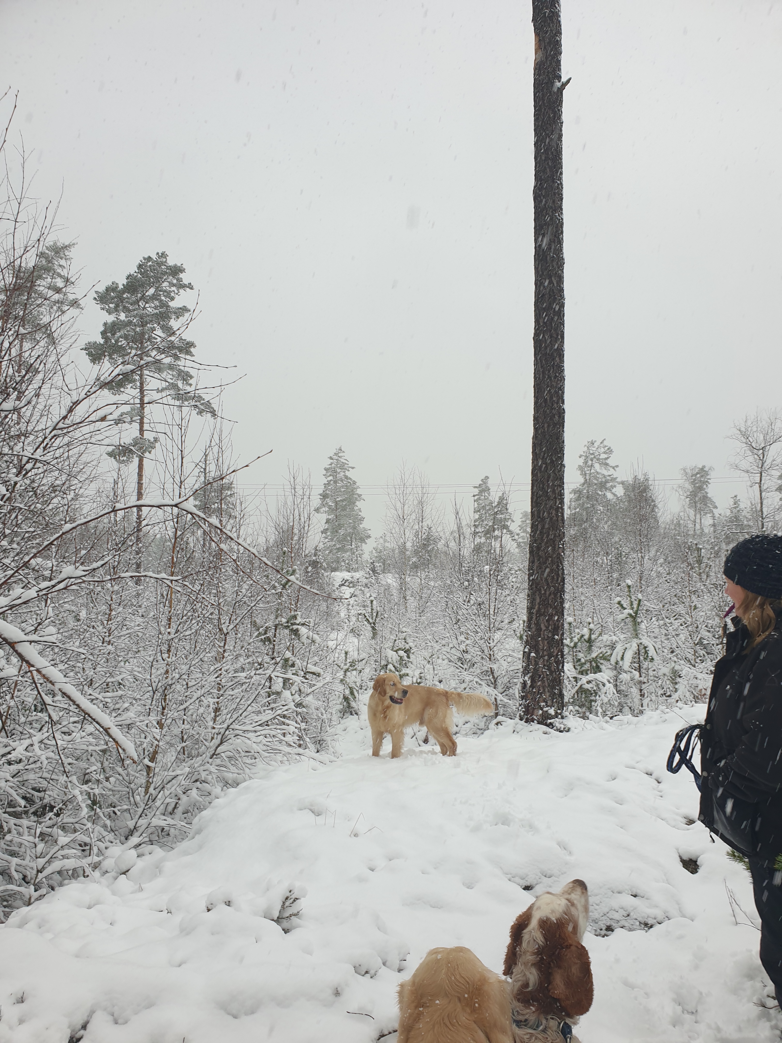 Bortsett från alla människor som vi saknar så saknade vi länge även snö men nu har den äntligen kommit! Temperaturen är lite för hög för att vi ska lita riktigt på att den ligger kvar men hoppet finns! Hundarna blir lika glada varje år och för Knasen är det första gången han upplever snö i vettiga mängder.