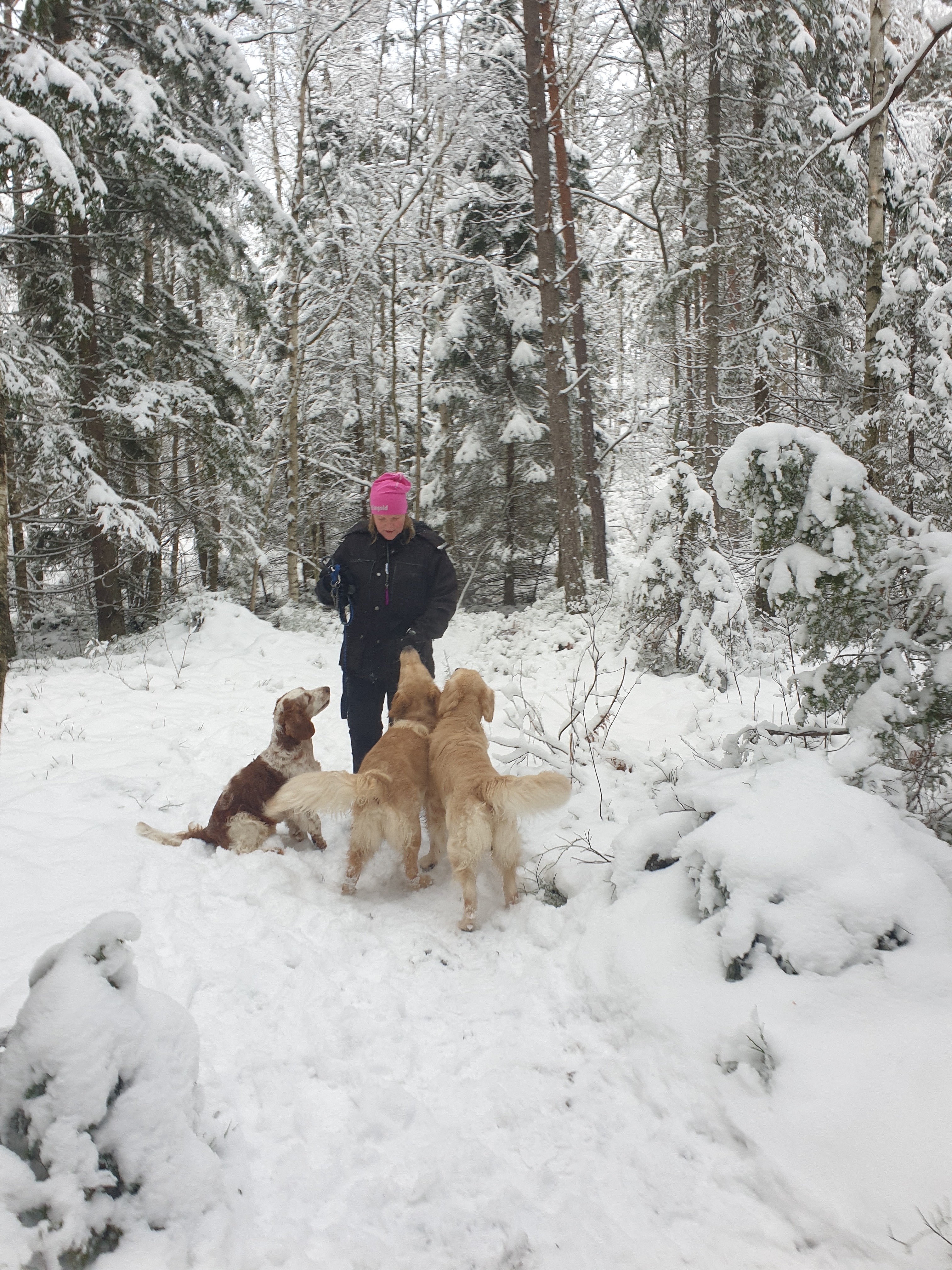 Bra väder för oss innebär ofta att vi sticker nånstans med hundarna. Idag blev det återigen en tur tillbaka till Åby där vi bodde förut och ut i skogen. Upptrampat på stigen men inte mer än så. Izidor gick lös i stort sett från start och efter ett litet tag när vi kände att vi var rätt ensamma i skogen så fick alla vara lösa, inget problem med hundarnas lyhördhet även om de kan sticka iväg 20-30 meter och oftast kommer tillbaka utan att vi behöver kalla på dem.