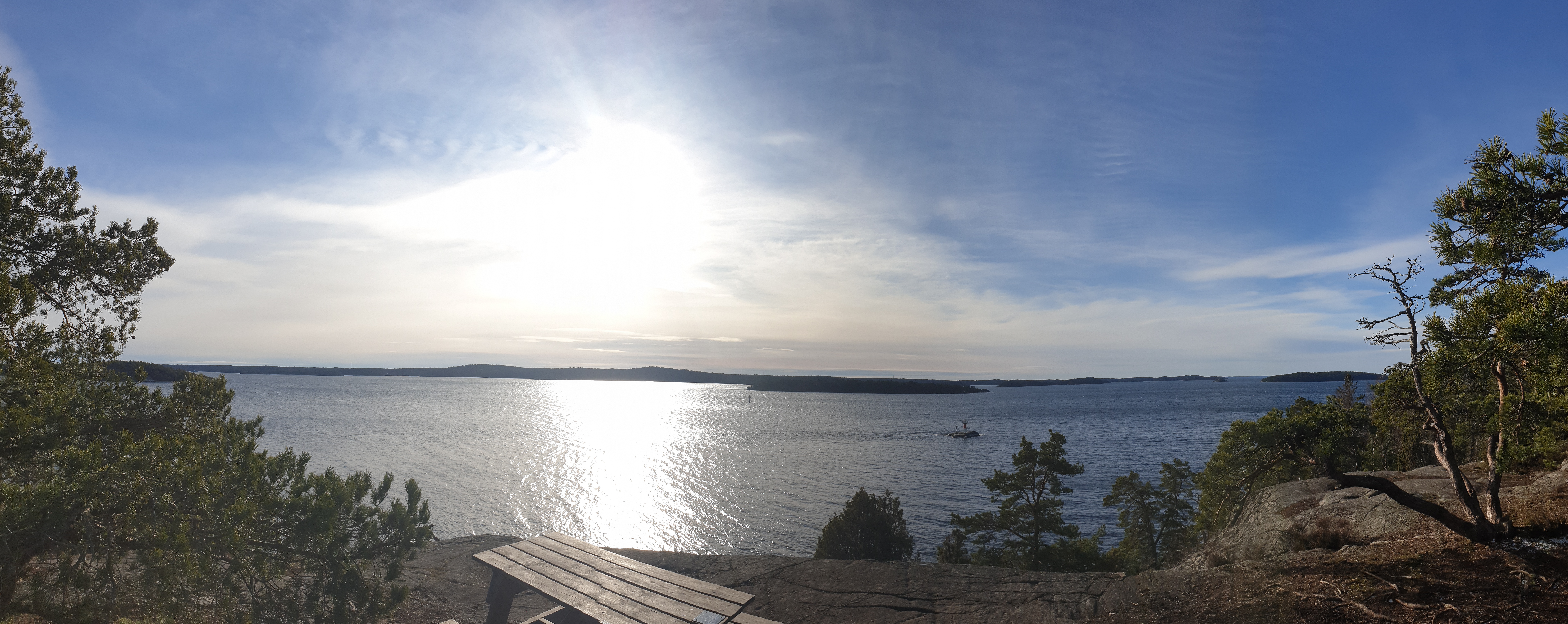 Jag har ju lite problem med sömnen och då speciellt att sova länge på morgonen, normalt när Helén jobbar brukar jag kunna dra mig tills hon kommer hem men idag slutade hon klockan åtta och min kropp tyckte jag skulle upp vid halv sju. När hon kom hem hade jag varit på morgonpromenad med hundarna och var nästan färdig med frukosten samt var ”färdigpackad” för en tur till Gålö. Packningen var lätt eftersom jag har lite känningar i ryggen fortfarande men vi skulle ju bara gå lilla Havtornsuddrundan på ca 4,5 km (upp och ner…) så det var systemkamera och en termos med te samt första förband i min lilla kameraväska. Rundan tog väl 1,5 timmar och var underbar!