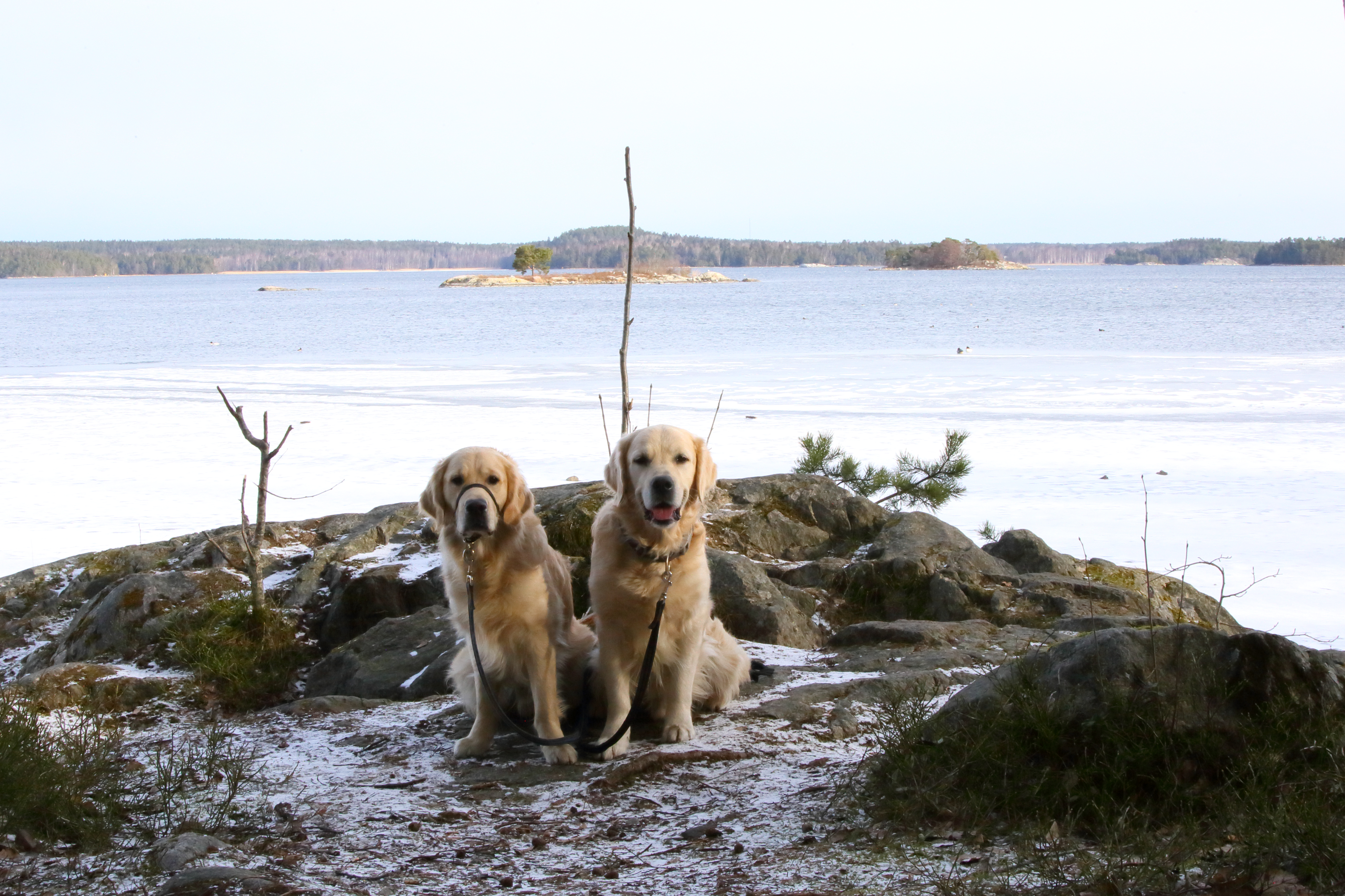 Bara jag och våra Golden, Atlas fick ligga hemma och mysa med Helén när hon sover, tre hundar är lite för mycket på den rundan med alla trappor om de inte får vara lösa och det får de inte från 1:a mars om man inte har stenkoll på dem.