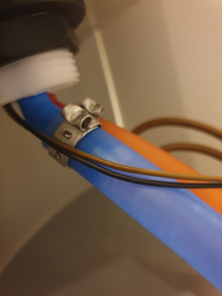 Givetvis har de använt en snabbvariant av slangklämma som är nästan omöjlig att få bort! Jag gav upp och kapade slangen istället…