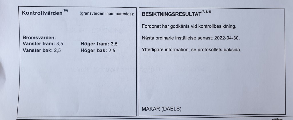 Tungt fordon innebär att man inte har speciellt många besiktningsstationer att välja bland utan det är närmast till Jordbro som tog emot och testade bilen lika positivt som vanligt de senaste åren.