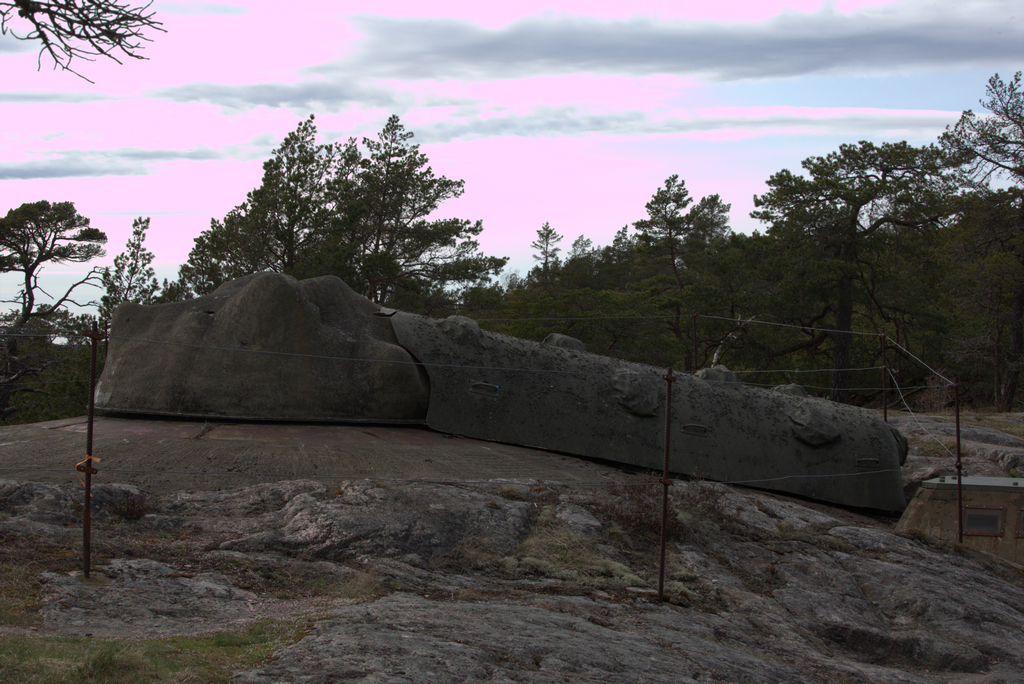 Uppe vid en av kanonerna möts man av en vidunderlig utsikt och man förstår verkligen varför fortet placerades här när man inser att det stänger av hela Bråviken där bland annat ett kärnkraftverk byggdes i Marviken, verket blev aldrig aktiverat och blev senare konverterat för oljeeldning. Radaranläggningen täckte hela vägen upp till Nynäshamn, alltså nästan hela vägen hem för oss! Hela anläggningen bands samman av en 450 meter gång insprängd i berget.
