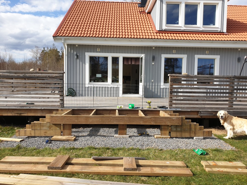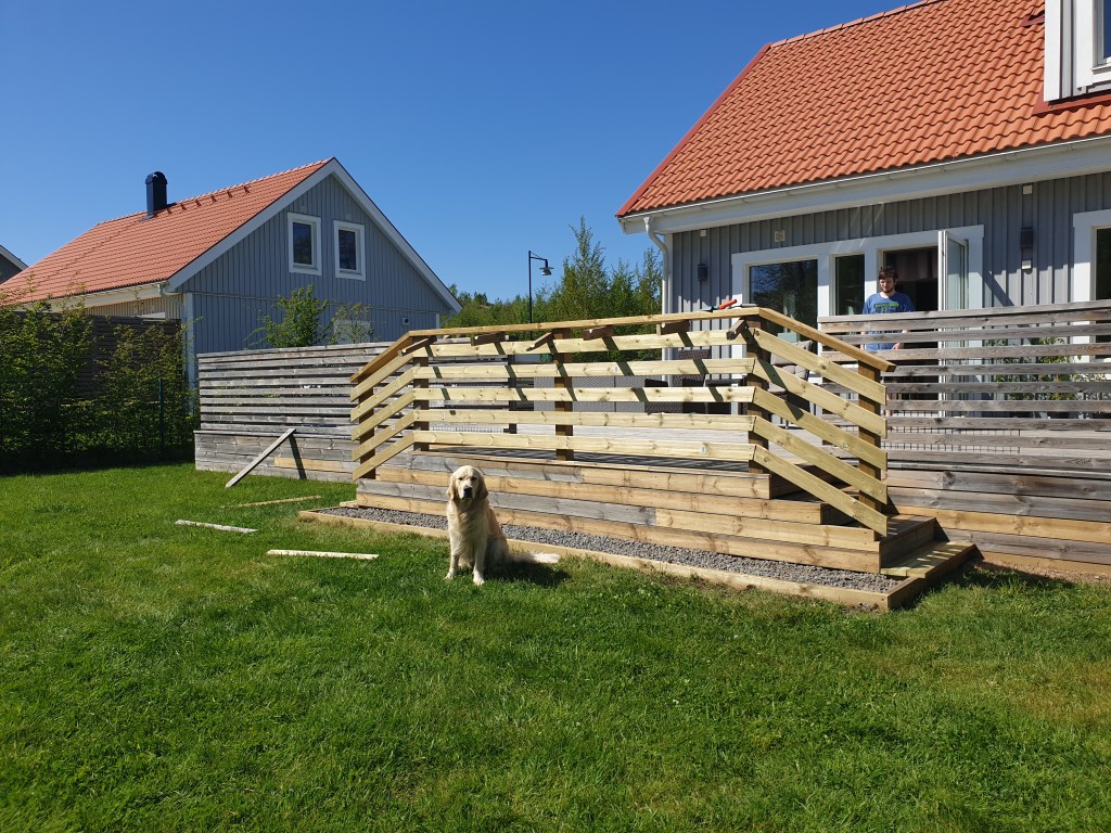 Vi fick för oss att bygga om trappan till altanen för ett tag sen eftersom hundarna tog fart från vardagsrummet och sprang rakt ut i luften med den gamla fina, öppna trappan vilket funkar med unga hundar men Atlas fyller snart nio…
