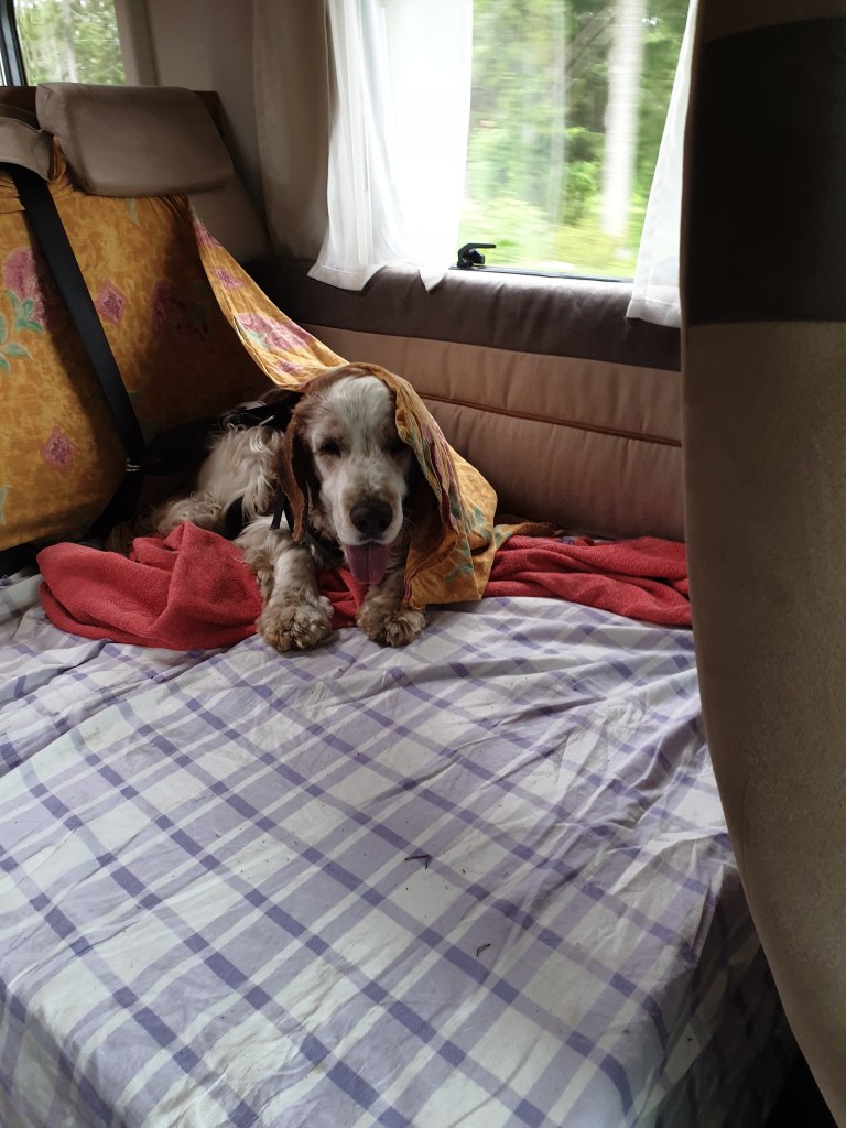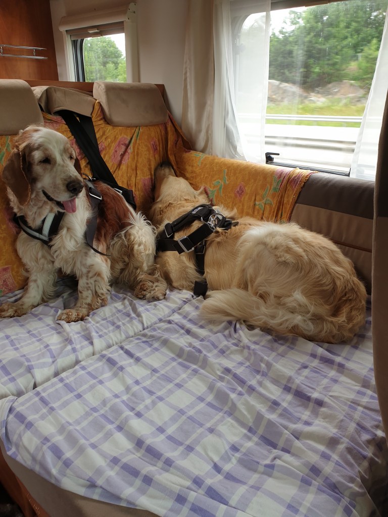 Vi åkte ju hemifrån redan i onsdags och siktade på Stenö Camping som vi stod på precis ett år tidigare, bättre plats men hur tänkte de? Campingen är kanske fylld till 25% men ändå får vi en plats direkt bredvid andra när vi talat om att vi har hundar med oss? Inget problem egentligen men vi valde att ställa husbilen ”fel” så vi inte skulle sitta så nära varandra.