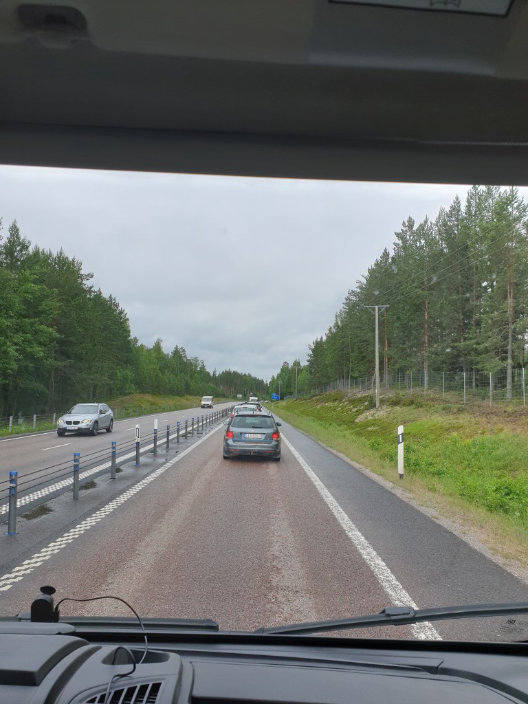 Resan dit gick bra nästan hela vägen men när vi bara hade två mil kvar till avfarten tog det stopp! Olycka på en 2-1 väg (den enfiliga delen förståss!) är liksom lite knepigare än en vanligt motorväg. Knappt en timme tog det tills det började rulla igen, tur man har toalett i bilen…