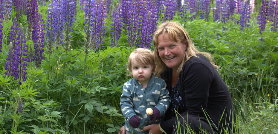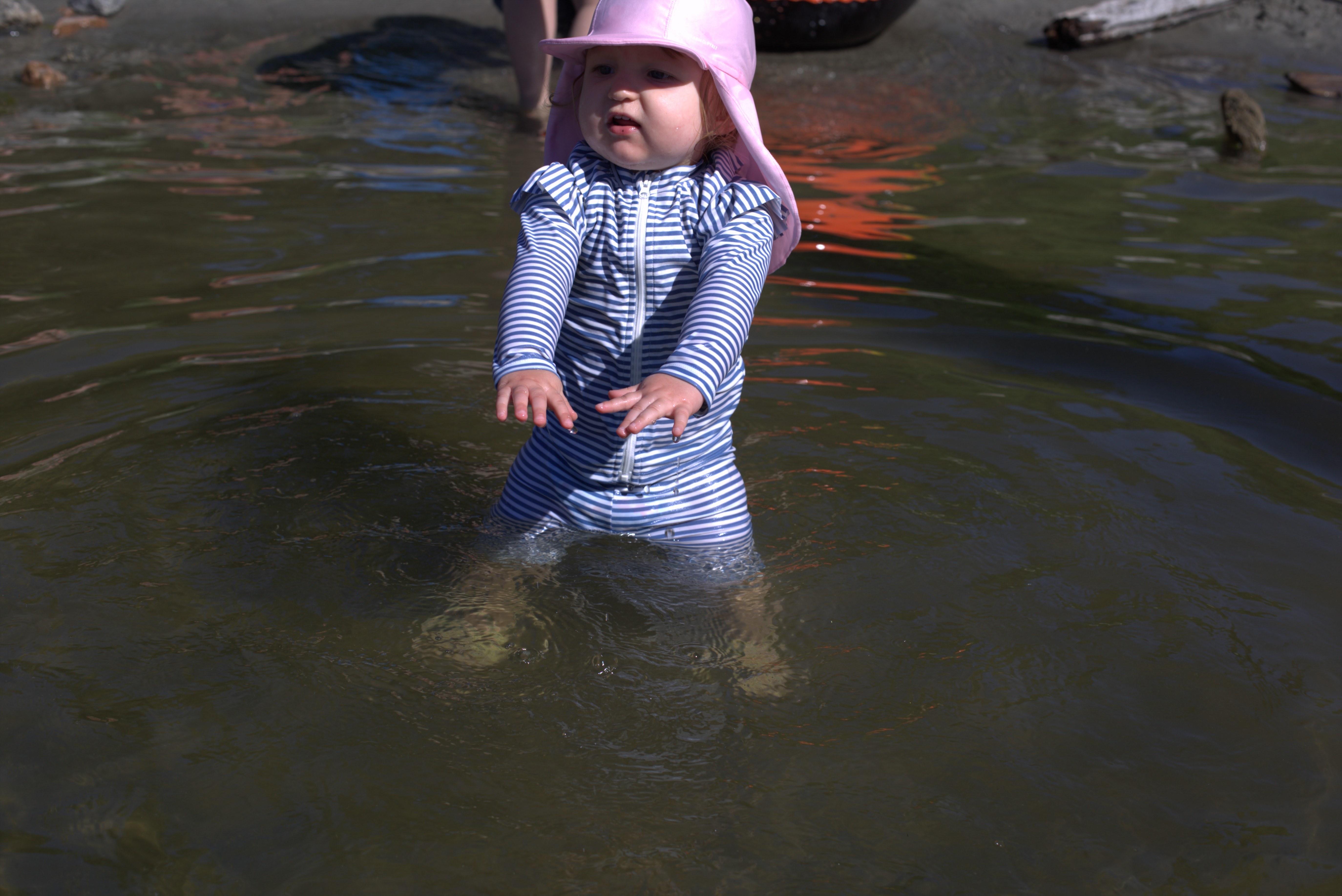 Eftersom tomten ligger bara några meter från Östersjön testade Junie givetvis även att bada i ”sjön” tillsammans med mamma och farmor.