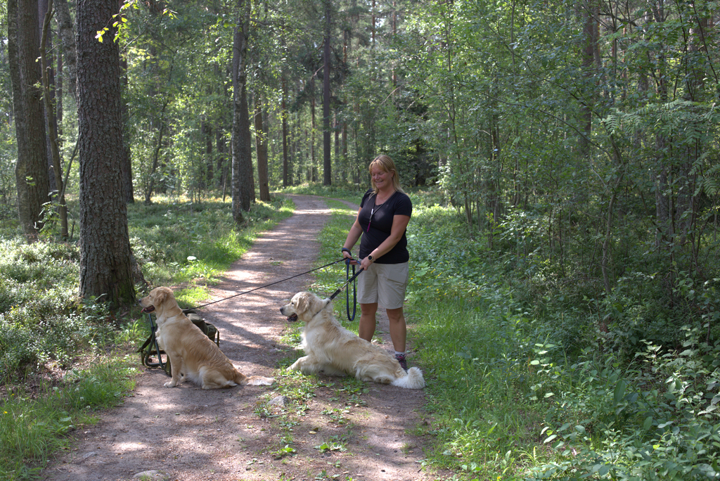Längs vägen stannade vi till vid en äng och körde lite apportering med alla hundarna, Göran och Helena stod för kastandet och såg till att allt gick rätt till.