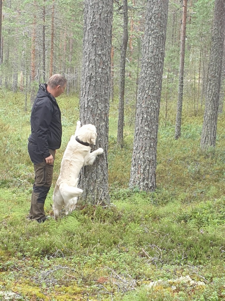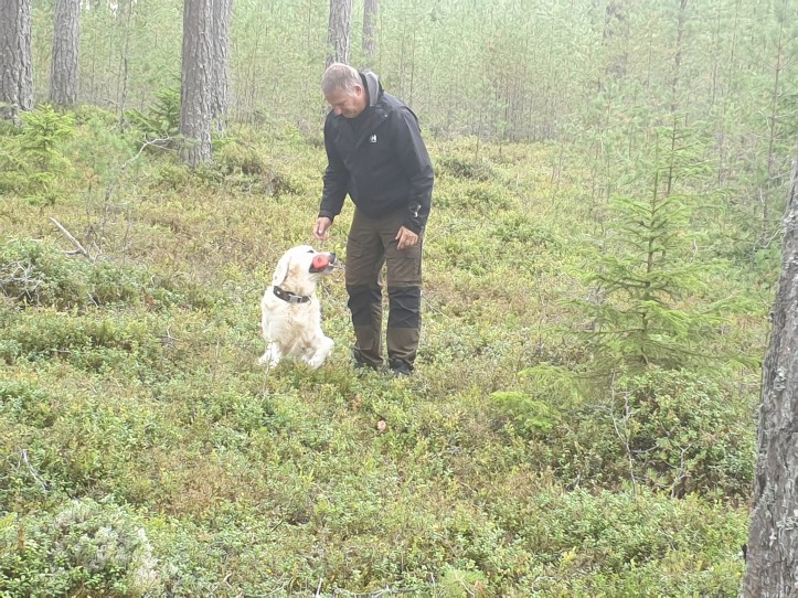 Frampå eftermiddagen kom det givetvis fler men känslan är att det bara är en övernattning och sen vidare för de flesta. Vi vår andra dag bestod mest av regn men vi hann med en skön tur i skogen blandat med lite träning av hundarna, uppletande blev det den här gången.