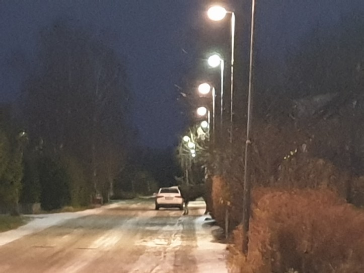 Jag går ut med hundarna på före frukost på vardagarna, en , två eller tre får följa med beroende på humör och om Helén jobbat den natten. Skön start men ibland är vi inte riktigt välkomna. Vi bor ”granne med naturen” brukar jag säga vilket givetvis innebär att alla djur i naturen finns i vår närhet. Jag brukar se rådjur några gånger i veckan men förra veckan mötte vi en räv som vände direkt, vackert djur med ordentligt svans.