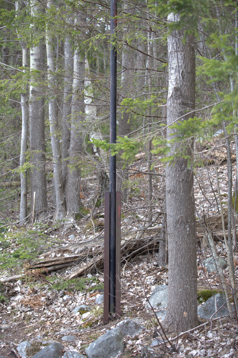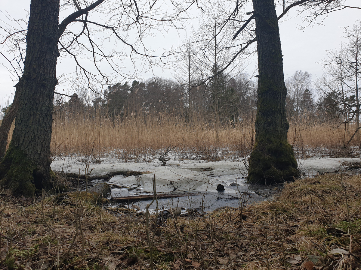 Isen är fortfarande tjock nog att gå på här och var men för det mesta bör man nog låta bli! Någonstans längs slingan hittade jag en stolpe som jag missat under de år som vi gått här men den verkar ha varit med rätt länge och oavsett vad som var syftet förut är den numera bara ytterligare en grej som människan placerat i naturen som saknar syfte!