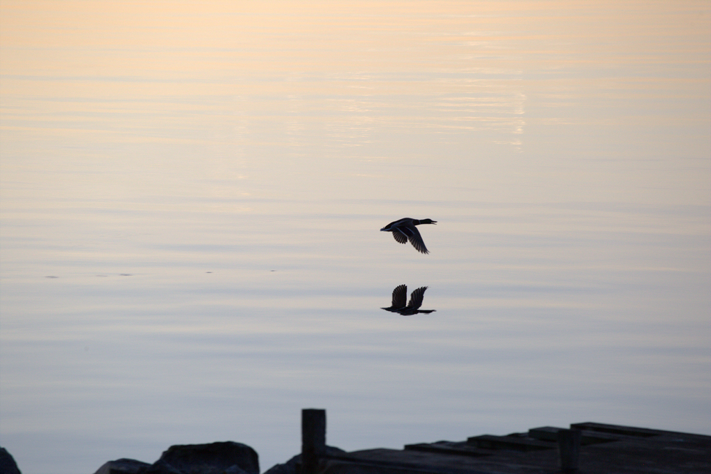 Vattnet låg spegelblankt och isen låg i ett tunt skikt lite här och var och bilden på däcken som speglas i vattnet är en av de jag blev riktigt nöjd med!