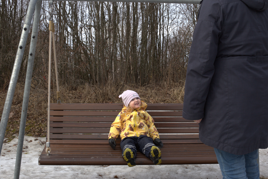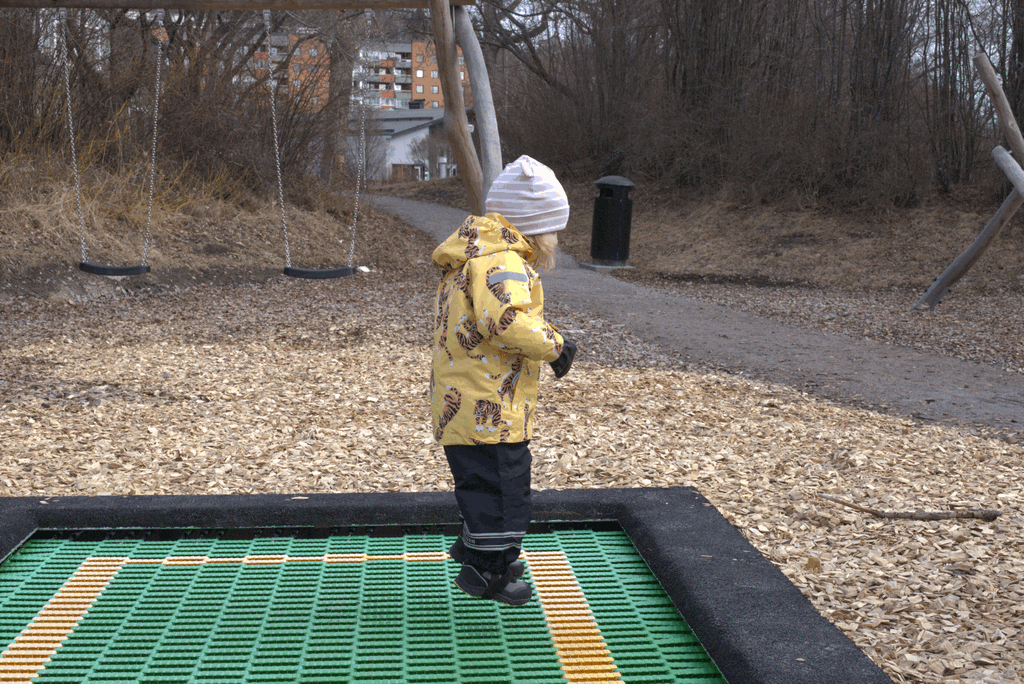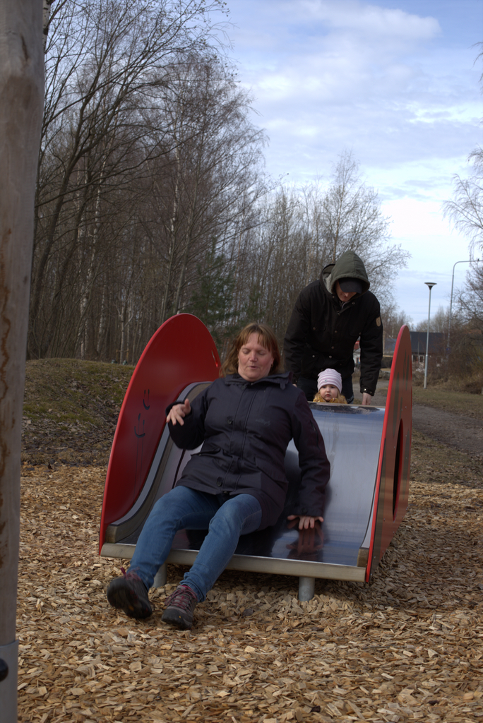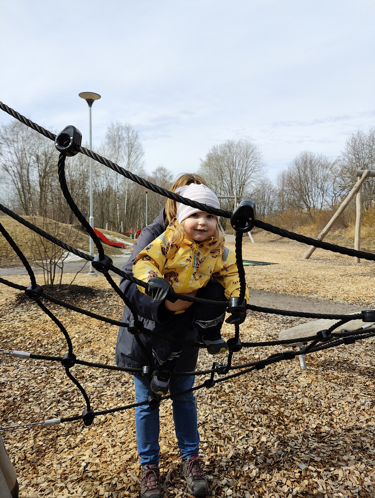 Givetvis var det inte bara kalas utan vi passade på att gå ut i lekparken tillsammans med Junie och Patrik så Ellen fick städa undan utan störning från oss andra. När man inte träffas så ofta så ser man ju framstegen på ett annat sätt och för mig var skillnaden i Junies kroppskontroll enorm! Studsmattan är en favorit men vi går runt mellan nästan alla sakerna på lekplatsen.