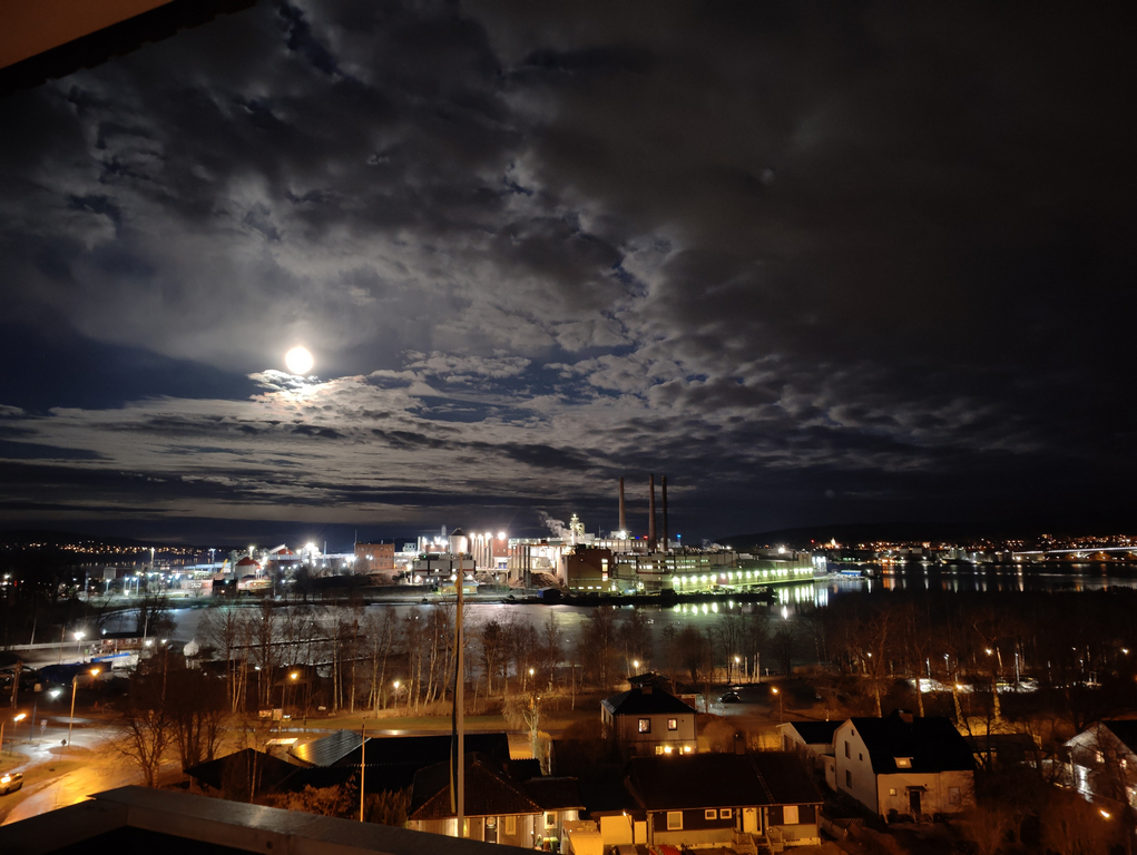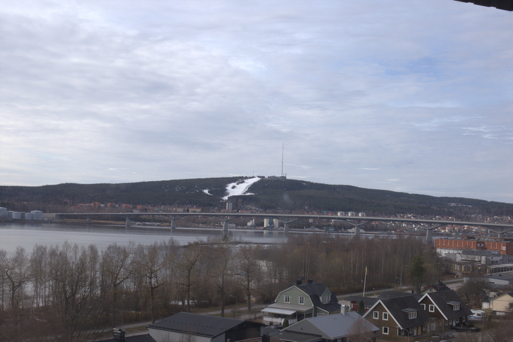 Varje gång vi kommer upp slås vi av utsikten från deras lägenhet, både mot Ortviken som numera ska vara någon form av återvinningsanläggning istället för pappersindustri och mot Sundsvallsbron och Södra berget (nedan).