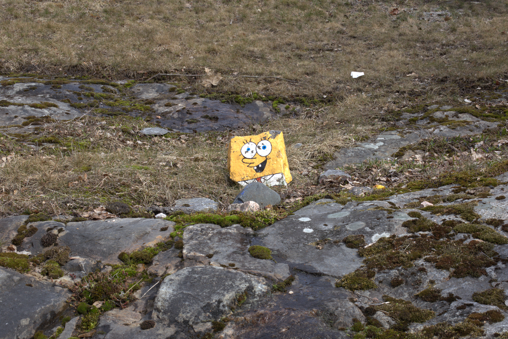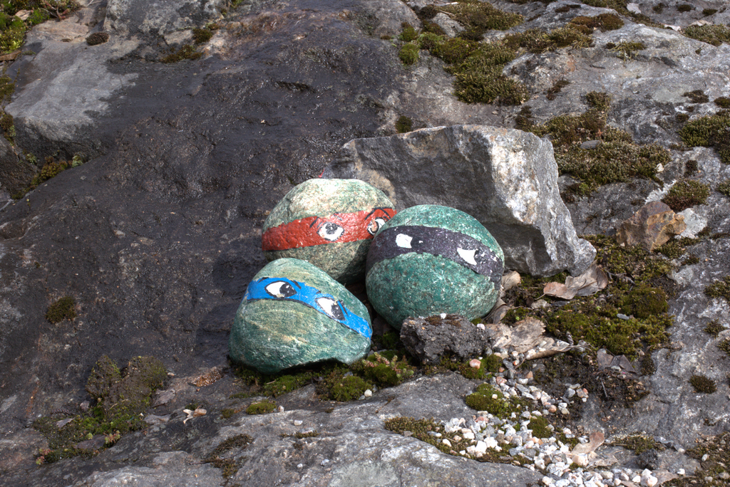 På förskolan som ligger i samma hus som de bor i fanns lite roliga stenar som jag givetvis måste fotografera. Kul när kreativiteten inte begränsas!