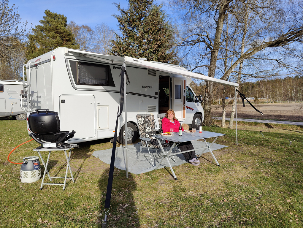 Jag tyckte egentligen mer synd om grannarna som var på andra turen med sin husvagn och dessutom skulle testa att slå upp ett helt nytt tält för första gången. De saknar fortfarande en del grejer men jag kunde i alla fall låna ut en gummiklubba och lite kunskap även om det är några år sen jag slog upp ett tält!