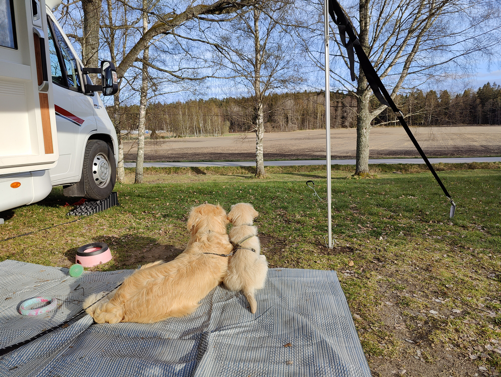 Helt underbar helg trots bitvis lite trist väder och skönt att Gaston fungerar bra i husbilen och på camping.