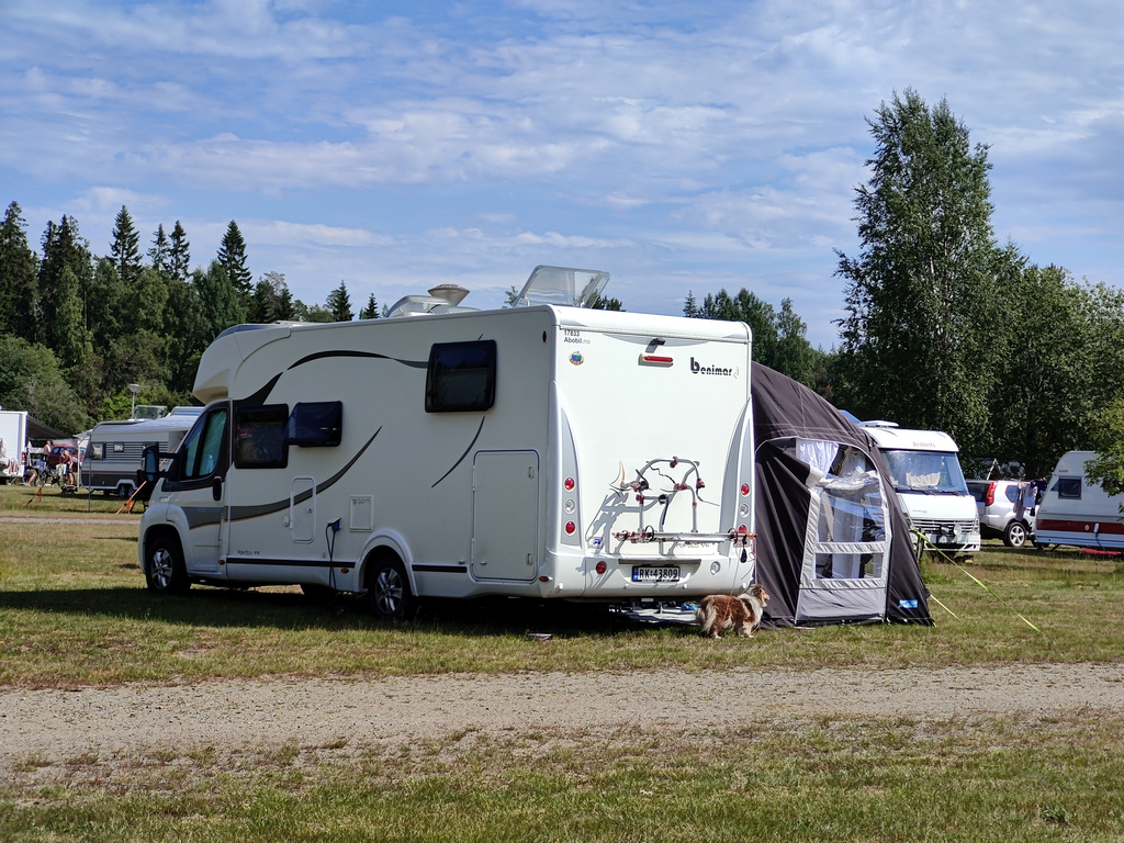 Norrbaggarna i den husbil som stod närmast oss hade åsikten att det är helt OK att lämna hunden fastspänd i husbilen större delen av dagen medans de var iväg och gjorde nåt annat. Den hade vatten och bra tillgång till skugga men så tycker i alla fall inte jag att man gör! Hunden skällde så fort något hände som triggade den, vilket var ofta, och till slut hade de flesta grannarna varit framme och sagt till jycken att hålla tyst! De stack iväg igen, återigen med hunden utanför, men då kom de tillbaka med en ”portabel” AC så jag antar att de tänkt lämna hunden inne i bilen i framtiden. Utan AC blir det snabbt varmt i bilen, vår har nästan gått non-stopp under de tider vi varit uppställda för hundarnas skull.
