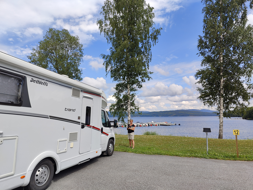 Efter Hoting var det dags för Kramfors där vi valde att ställa oss på Kramforsvikens Camping som ligger fint nere vid älven och samtidigt har nära till centrum. Vi var där rätt tidigt och valde självklart en av de fina asfaltplatserna längst ner mot vattnet. Vi pratade lite med ägaren till campingen om det var något problem om vi ”markerade” platsen med stolar eller nåt om vi åkte iväg till några kompisar och det tyckte han lät bra så såg de som kom senare att just den platsen var upptagen och betald för. Ingen på plats när vi kom men bara att ringa numret på tavlan så fick vi koden till bommen och servicehuset, betalning via Swish funkade alldeles utmärkt.