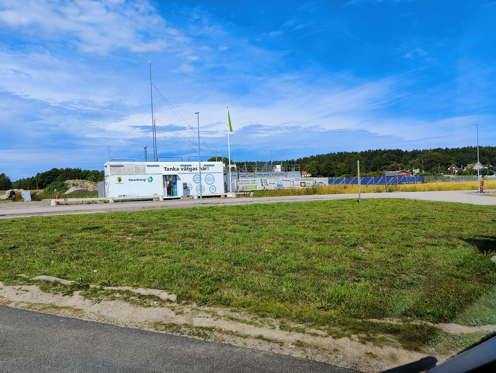 När vi stannade för att tanka på Ingo så såg jag en väldigt intressant station en bit bort. En tankstation för vätgas som ”skapar” sitt bränsle med hjälp av solceller för att dela vatten till syre och vätgas. Det känns som ett bra (men mindre effektivt) alternativt till batterier i elbilar eller till och med gasdrivna förbränningsmotorer då det går snabbare att tanka och avgaserna är vattenånga.