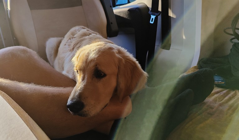Jag och hundarna tog en lite lugnare morgon i husbilen efter morgonpromenaden. Valet att sitta inne var enkelt, det droppade en del utanför bilen.