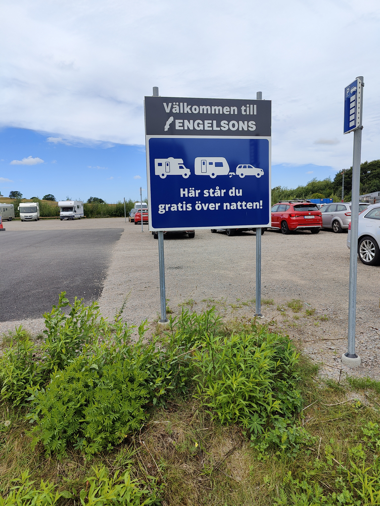Engelsons har förstått att många kunder med friluftsintresse kommer med mobilt boende och har helt enkelt en större parkering på andra sidan gatan där man kan övernatta, mycket bra! Vi hade bokat en annan camping på kvällen innan så vi åkte vidare.