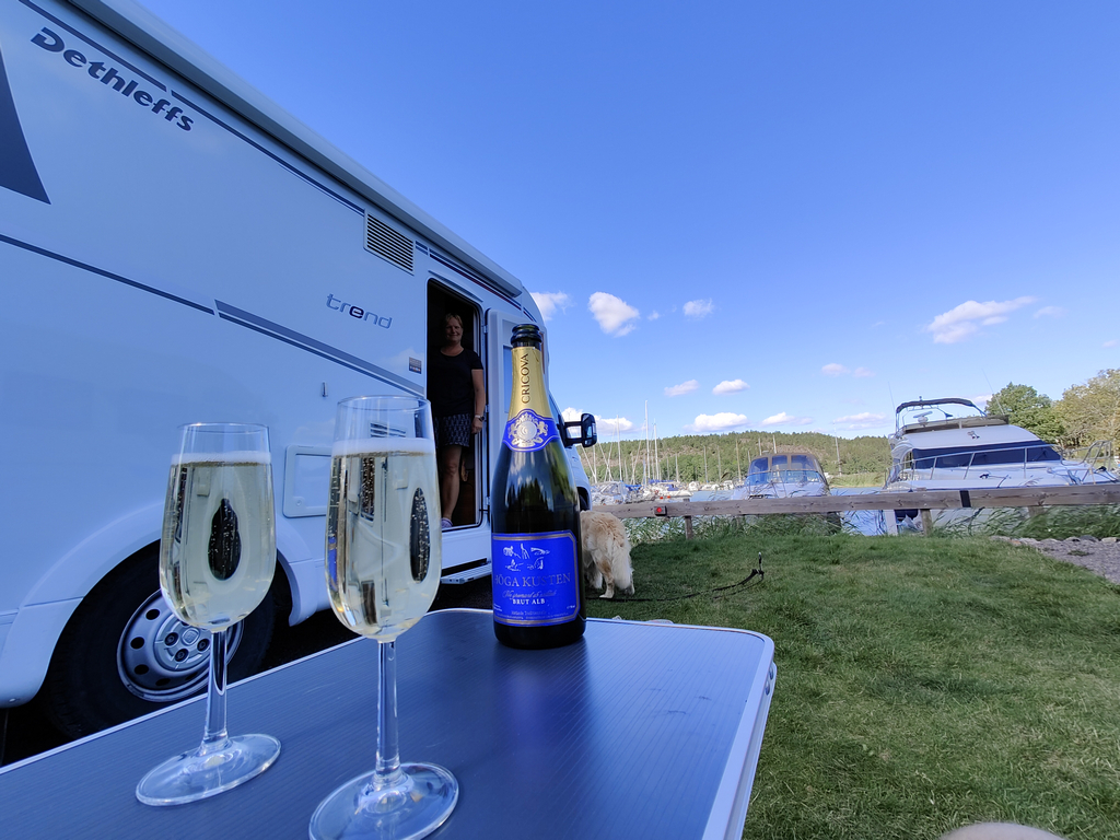Sista planerade övernattningen för säsongen så vi kände behovet av att fira lite med god skumpa från High Coast Wine, Höga Kusten Brut Alb, som Linda tipsade oss om när vi hälsade på hos dem i Lunde för några veckor sedan.
