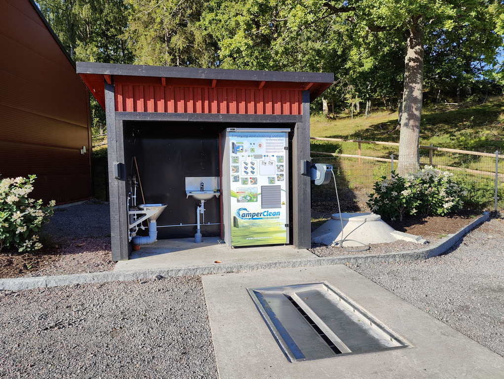 Jag skrev att avståndet till servicehuset var lite långt men de har en tömningsstation med CamperClean som ingår i priset, mycket trevligt! Risk för kö vid tiden för utcheckning men så är det ju överallt.